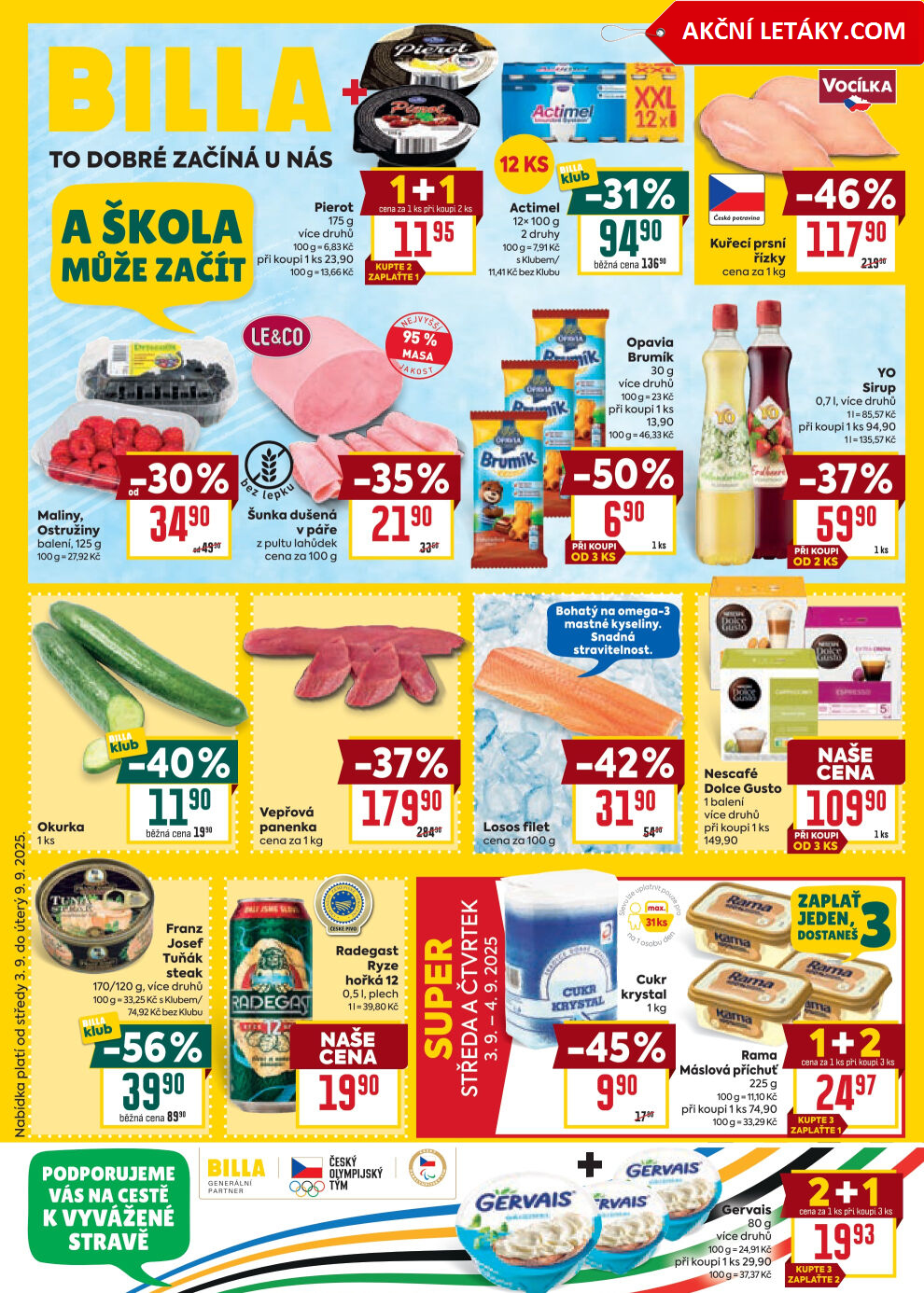 Akční leták BILLA platí od 3.9. do 9.9. 2025