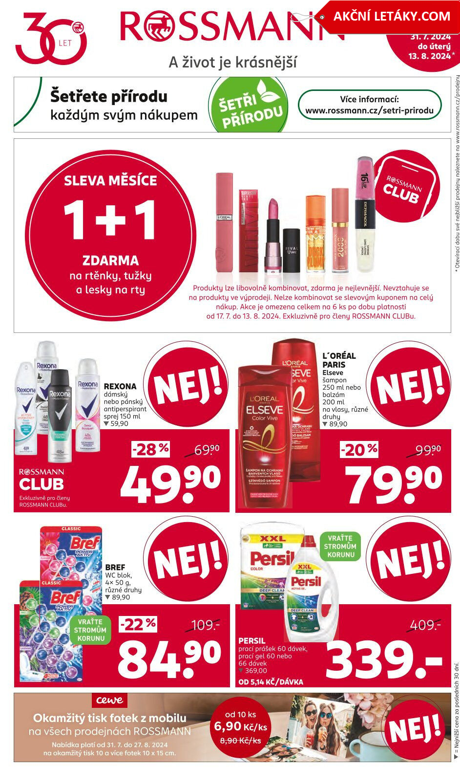 Akční leták ROSSMANN drogerie platí od 31.7. do 13.8. 2024