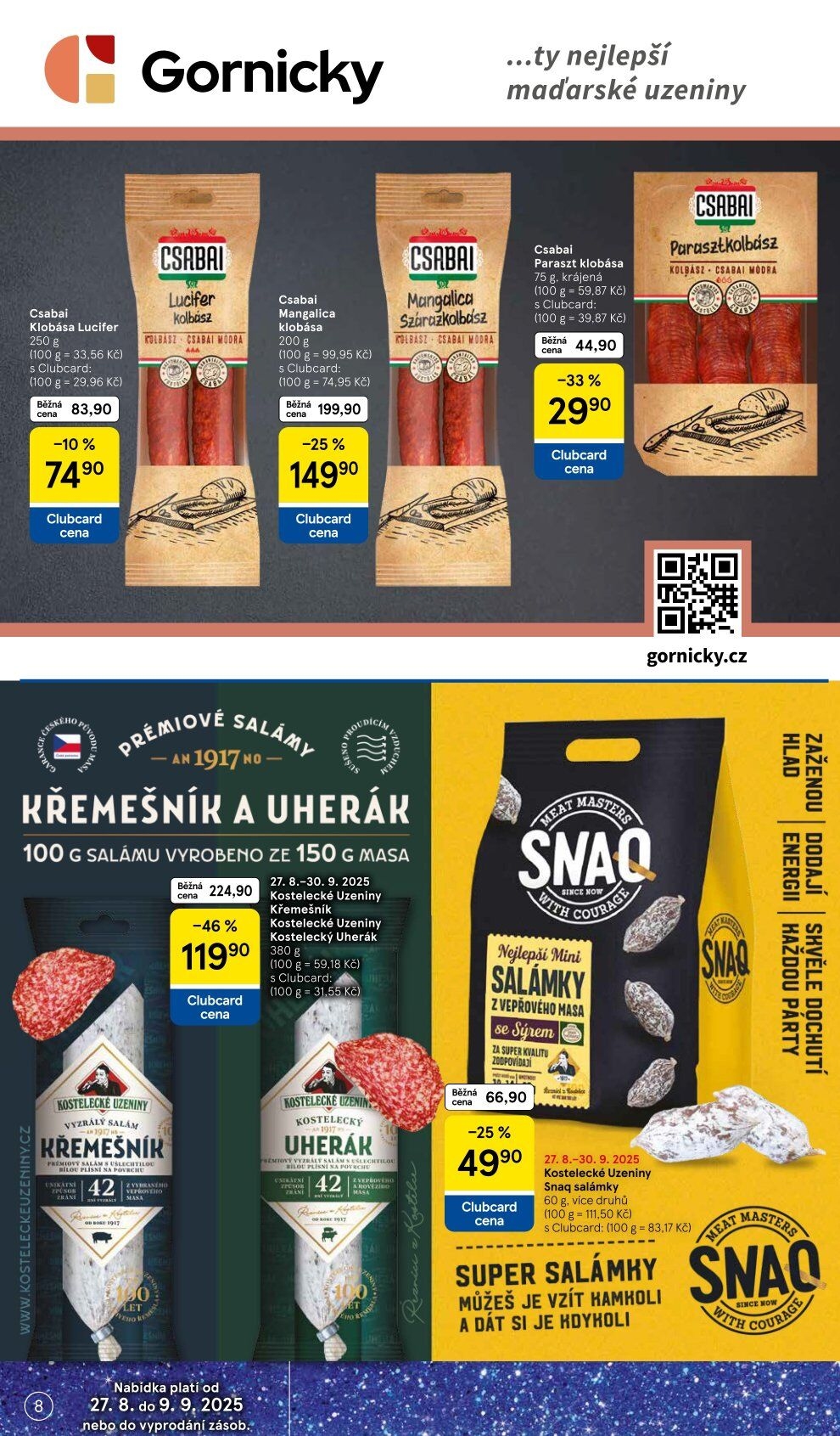 Klobása Lucifer Csabai akční sleva v Tescu (27.8. do 2.9. 2025)