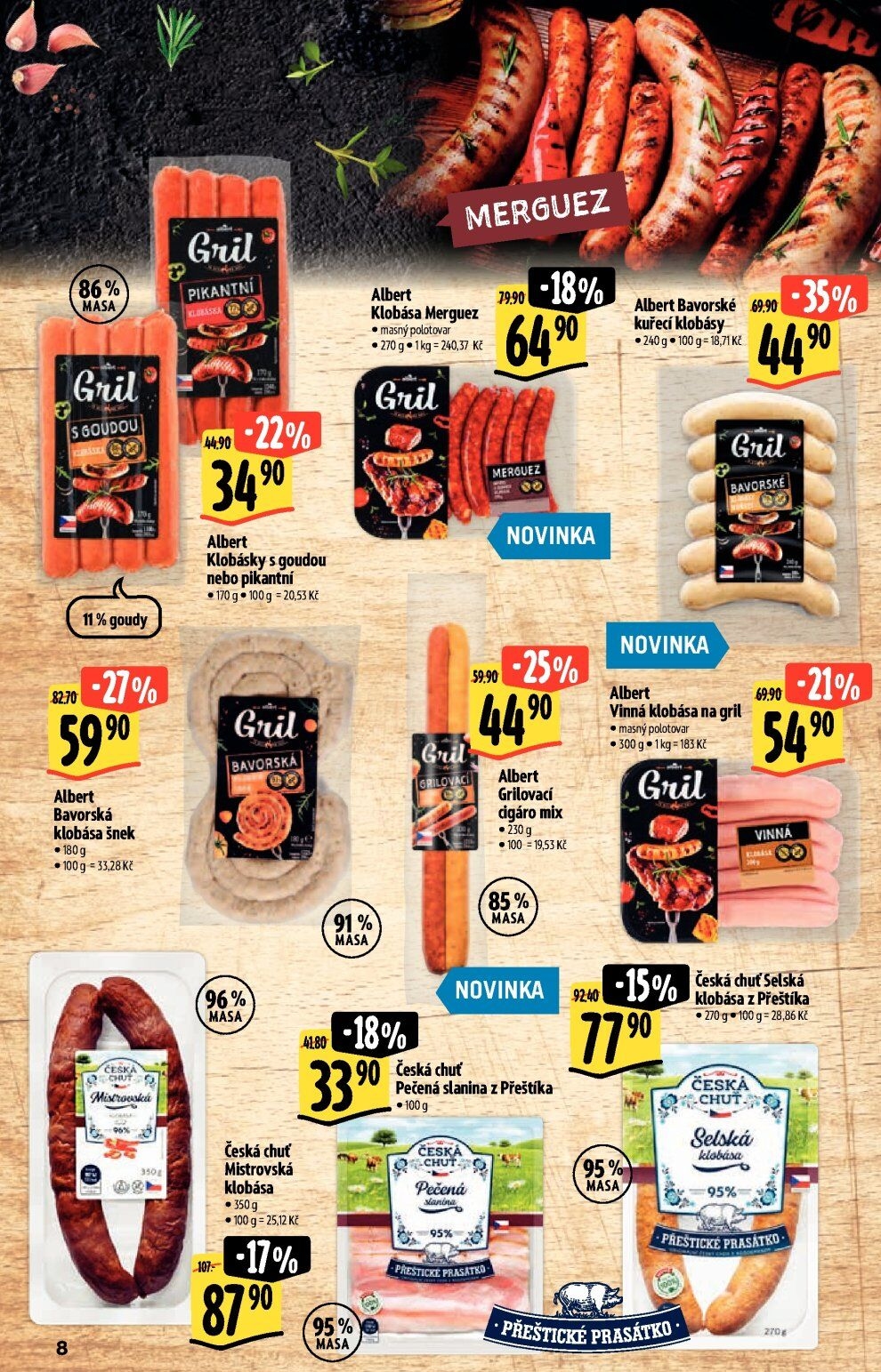 Klobása Merguez Albert Gril akční sleva v Albertu (17.4. do 7.5. 2024)