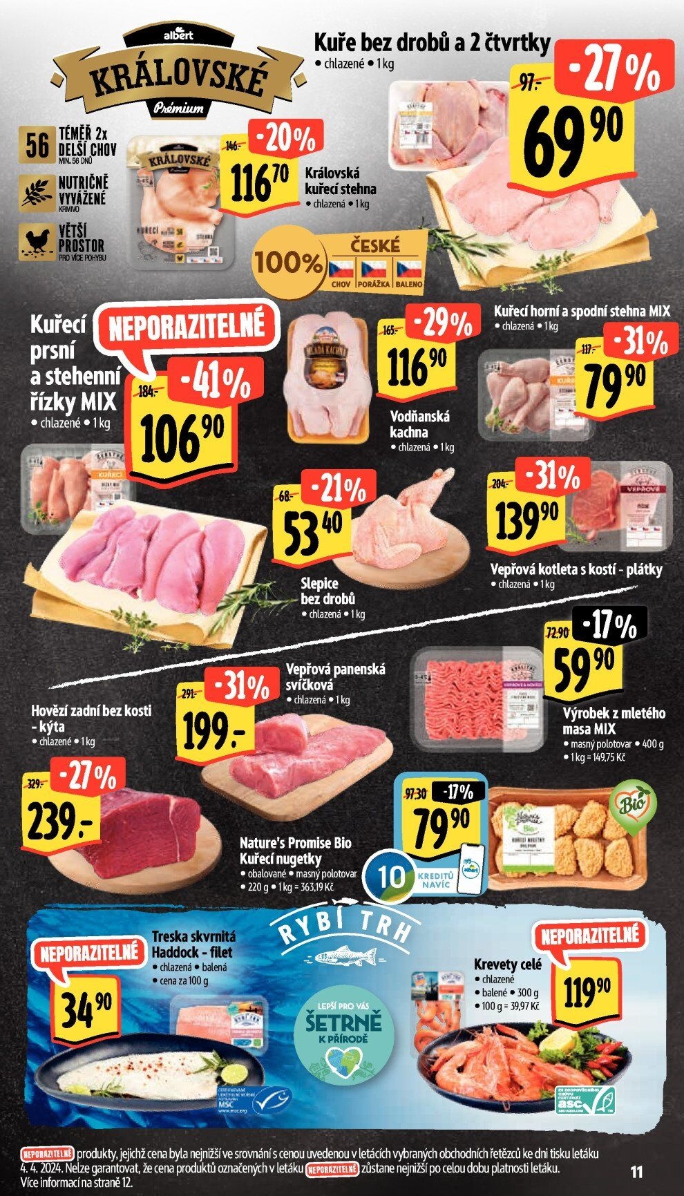 Kuře + 2 čtvrtky Albert akční sleva v Albertu (10.4. do 16.4. 2024)