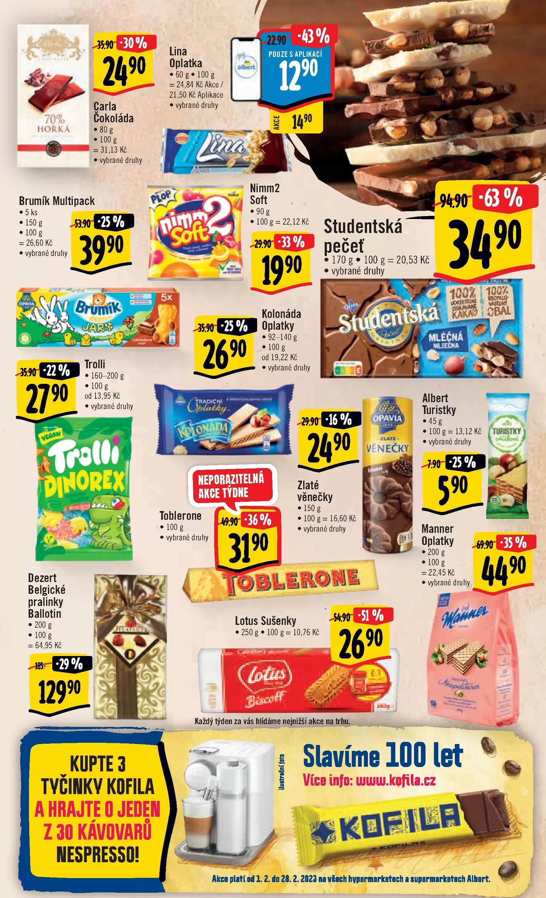 akca platí od l. 2. do 20.2.2023 na všach hvparnarkatach a supermarketech albart.