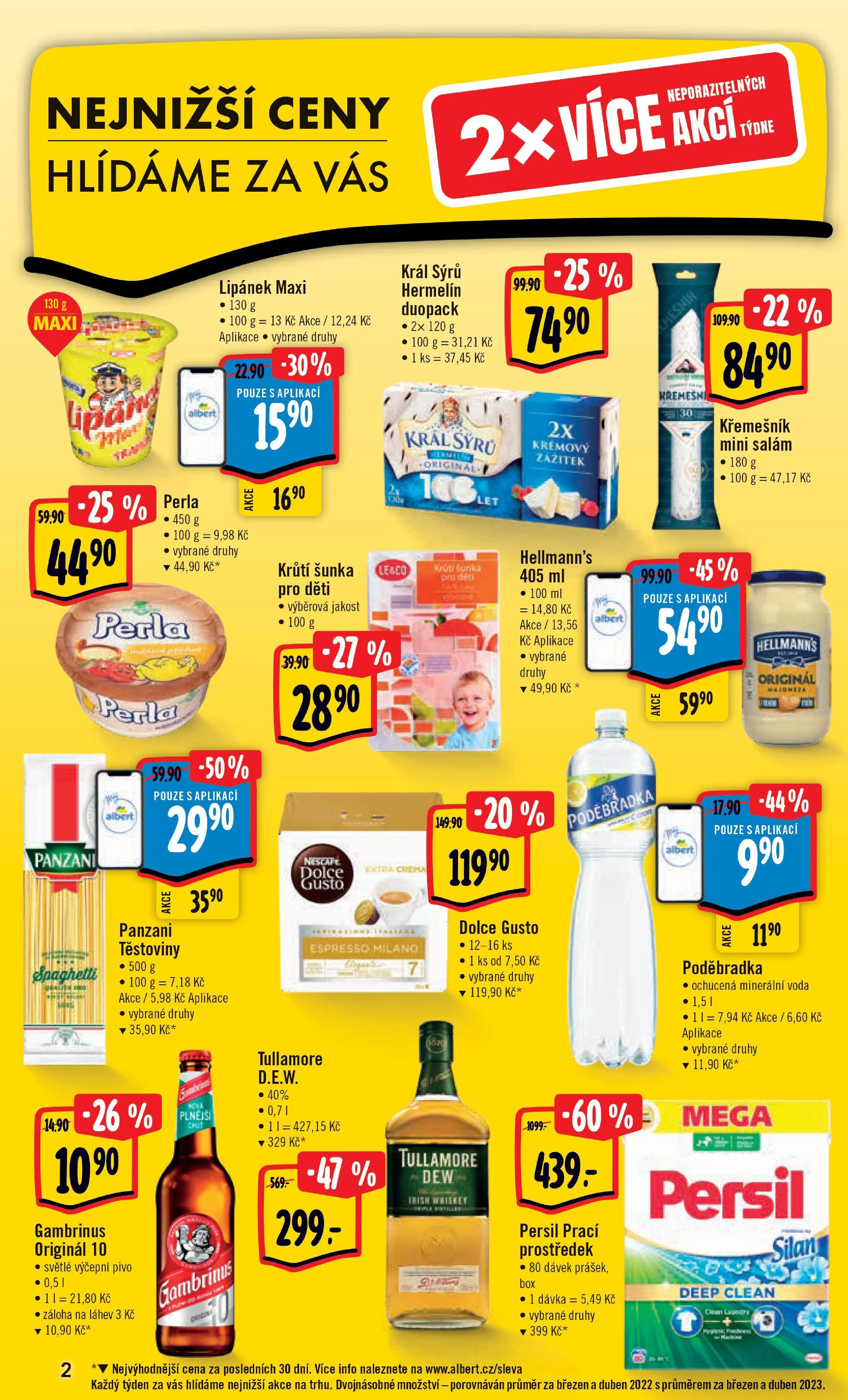 každý týden za vás hlídáme nejnižší akce na trhu. dvojnásobné množství- porovnáván průměr za březen a duben 2022 s průměrem za březen a duben 2023.