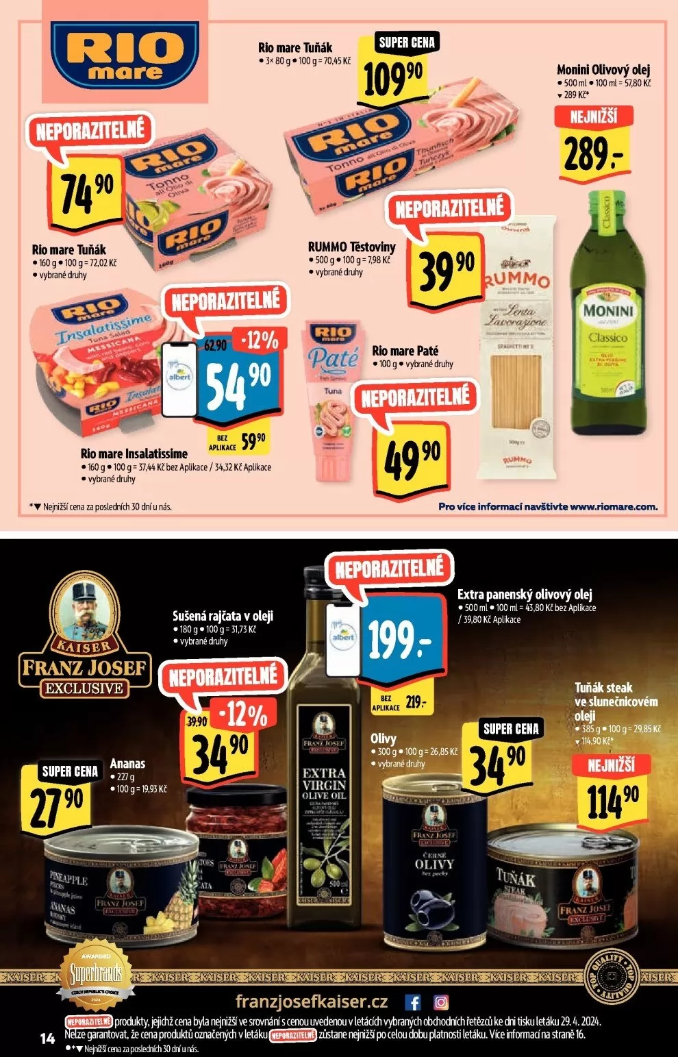 produkty, eichž cena byda l*ižší 'r sro.qún' s cenou uvedenou v letácích vybraných djchodích řetězců ke dli fisku letáku 29.4.2024.
