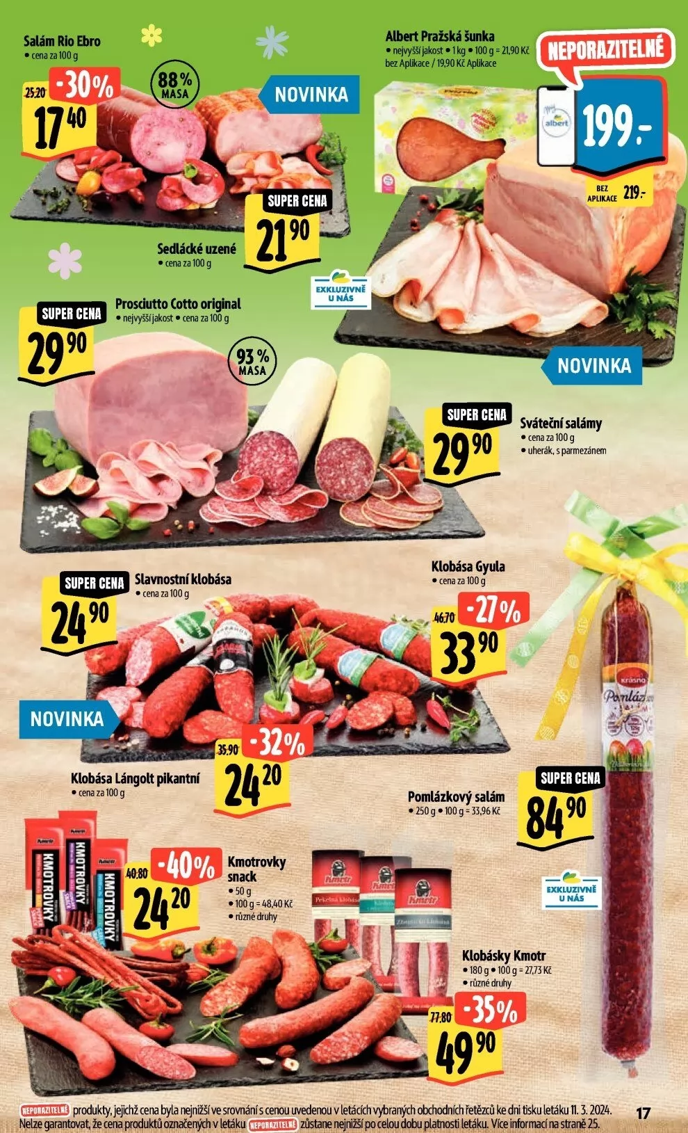 produkty, jejichž cena byla ĺgnižšíve srovnání s cenou uvedenou v letácích vybraných řetězců ke dni tisku letáku 11.3.2024.