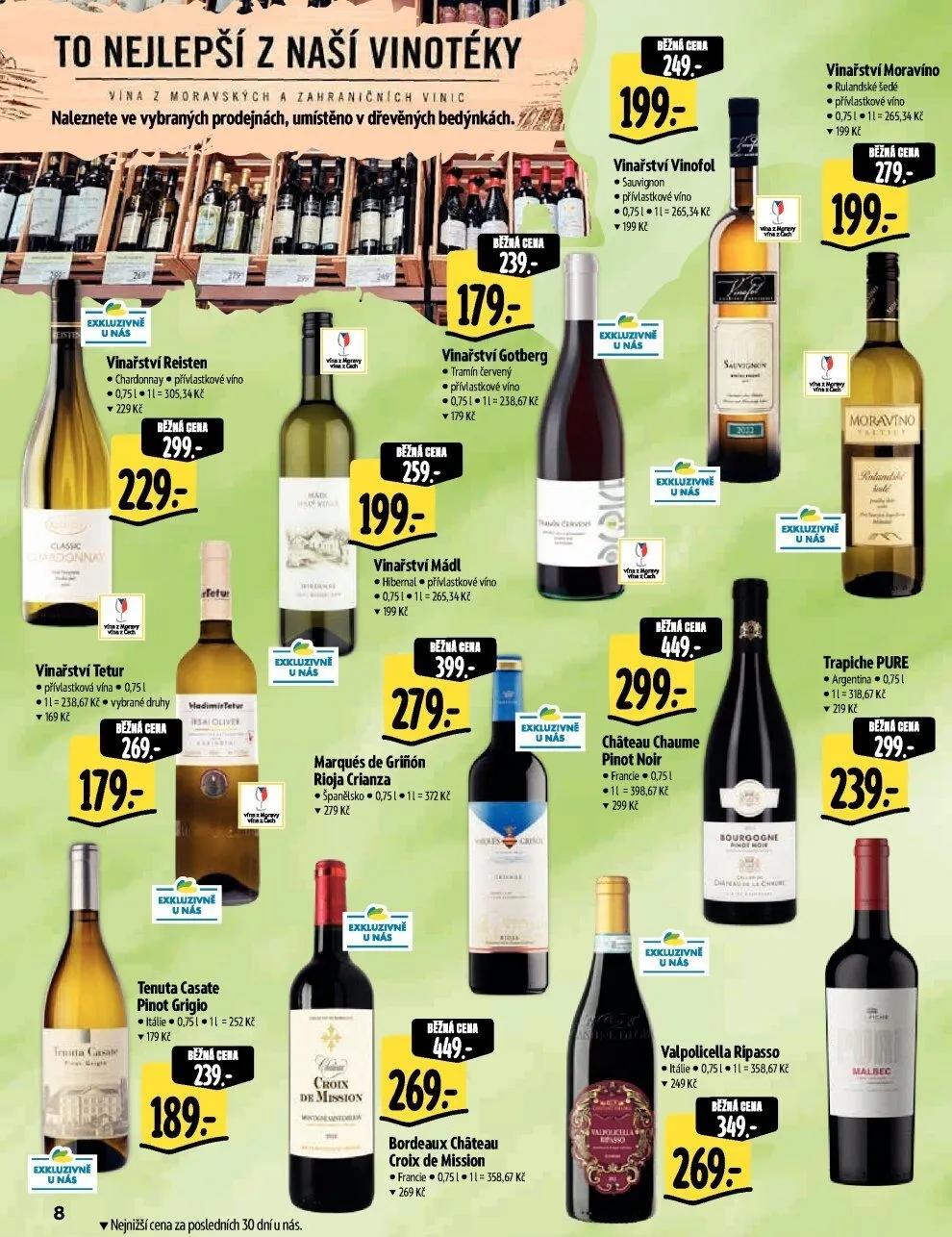 Vinařství Moravín; bílá vína; 0.75 l; 199 Kč; sleva 80 Kč