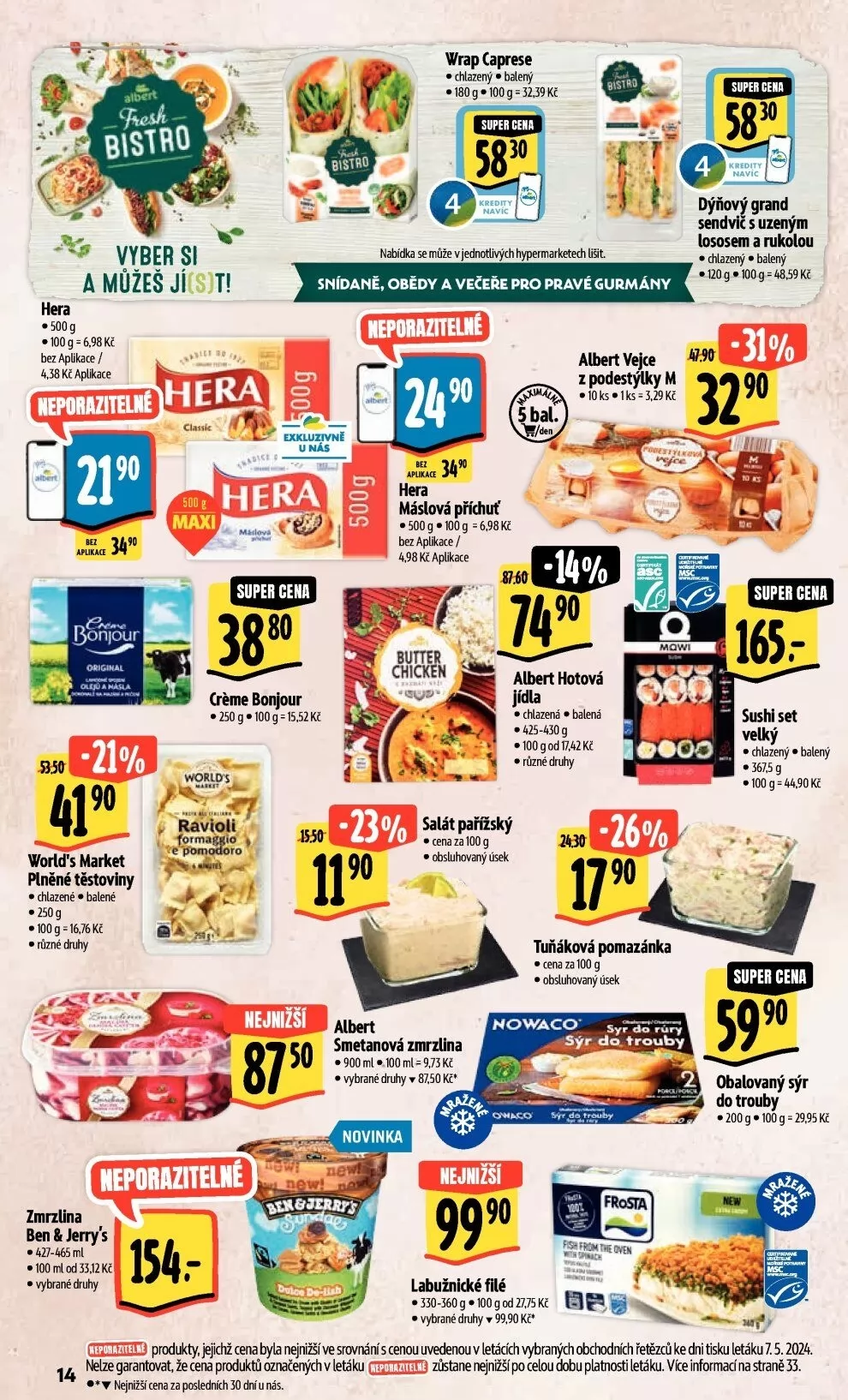 produkty, jejichž cena byla nejnëíve srovnání s cenou uvedenou v letácích vybraných obchodních řečzců ke dni tisku letáku 7.5.2024.