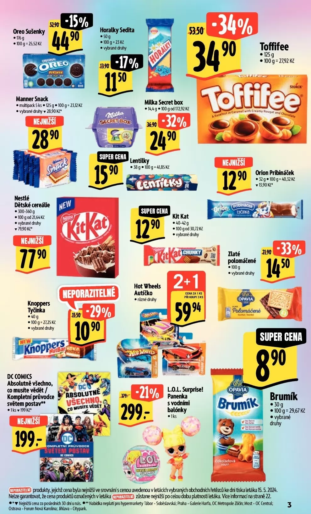 produkty, jejichž cena byla rgnižšíve srovnání s cenou uvedenou v letácích vyhraných obchodních řetězců ke dni tisku letáku 15.5.2024.
