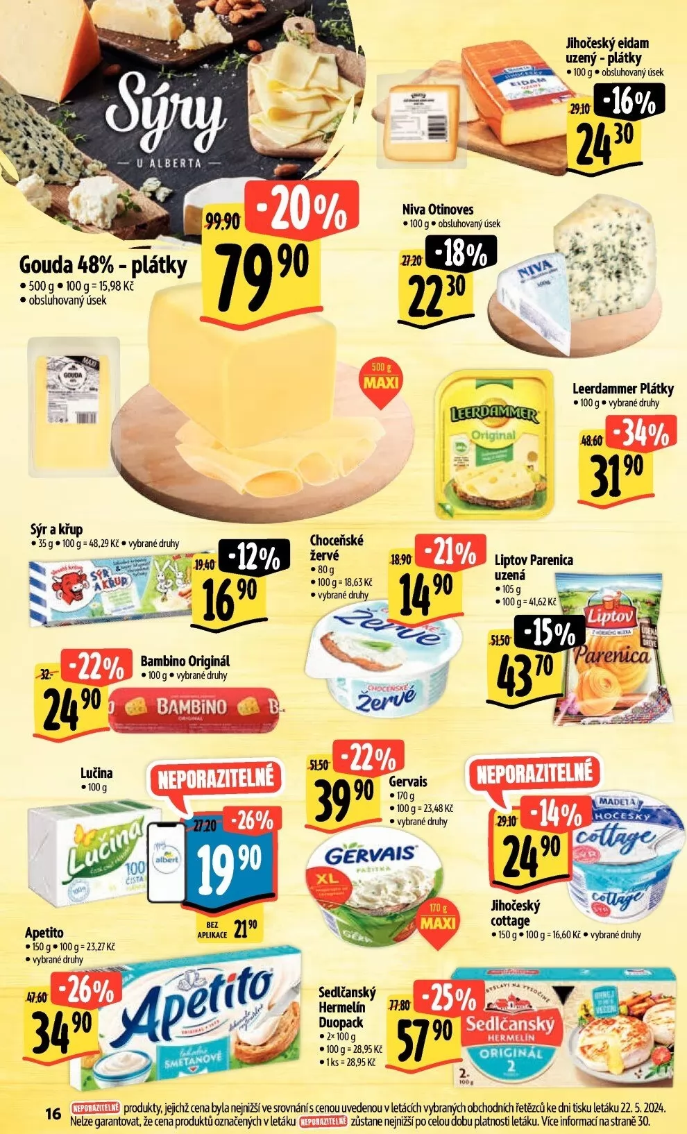 prodlkty, jejchž cena nejnižšíve srovnánís cenou uvedetr u v letácích vybraných obchodnth řetězců ke dni tsku letáku 22.5 2024.