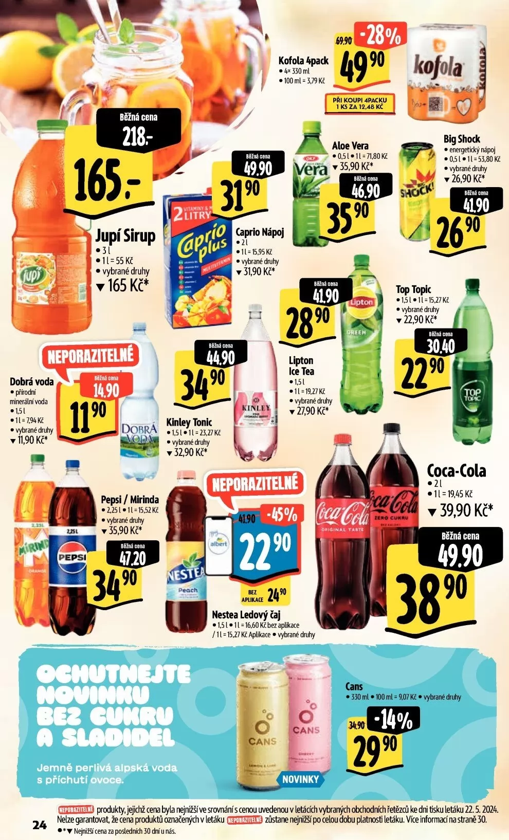 produkty, jejichž cena byla nejnižšíve srovnání s cenou uvedenou v letáath vybraných obchodnth řetězců ke dni tsku letáku 22.5.2024.