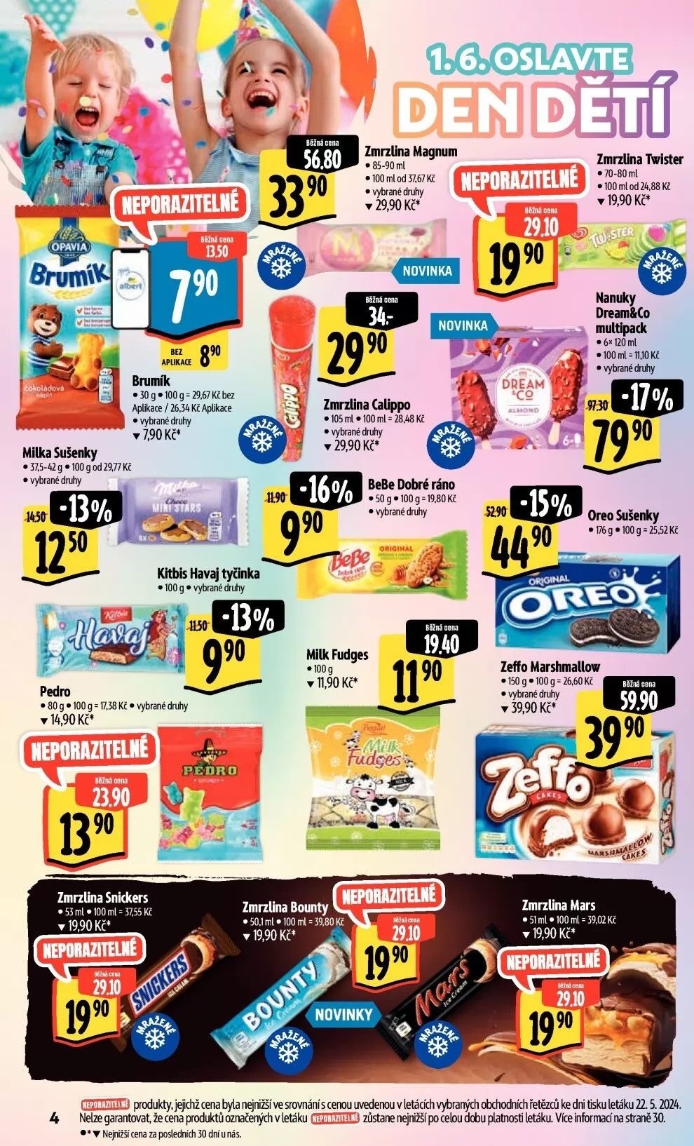 produkty, jejichž cena byla nejnižšíve srovnánís cemu uvedenou v letácích vybraných obchochích řetězců ke dli tisku letáku 22.5.2024.