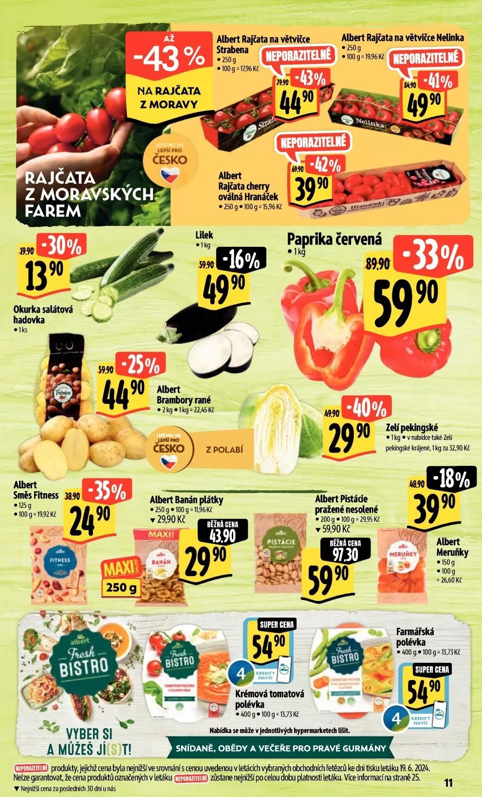 produkty, jejichž cena byla tgnižšíve srovnání s cenou uvedenou v letácích vyhraných obchodních řetězců ke dni tisku letáku 19.6.2024.
