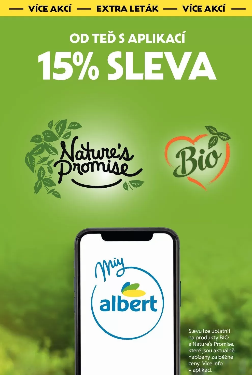 extra leták více akcí více akcí od teď s aplikací sleva albert slevu lze uplatnit na produkty bio a nature's promise, které jsou aktuálně nabízeny za běžné ceny. více info aplikpci.