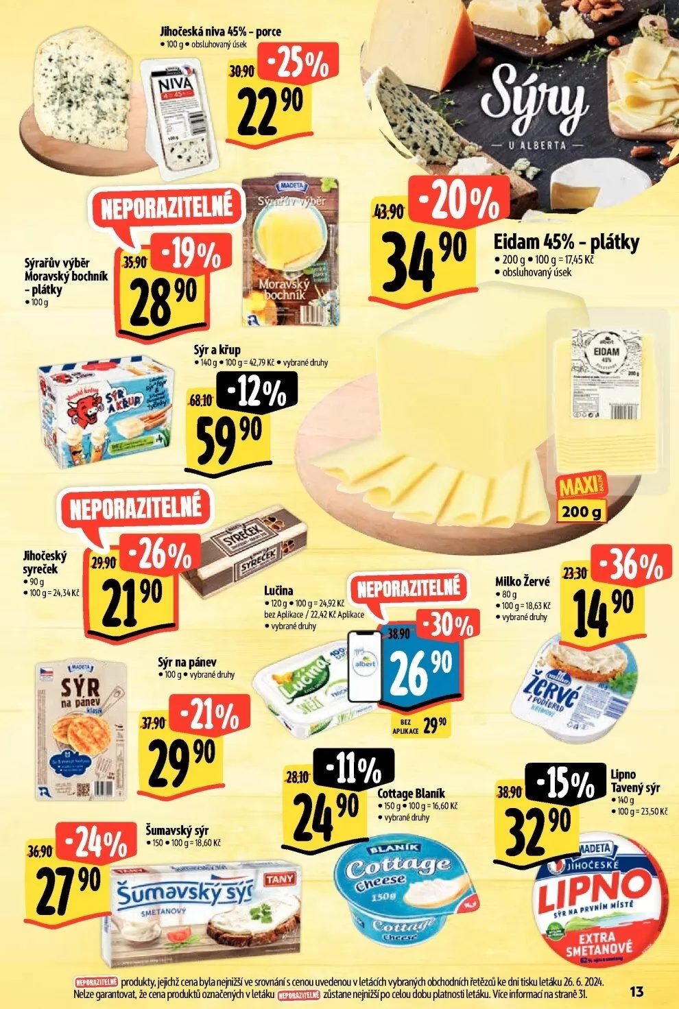 jejchž cena byla nefiižšíve srovnání s cenou uvedenou v letácích vytnných ňchodních řetězců ke dni tisku let*u 26.6.2024.