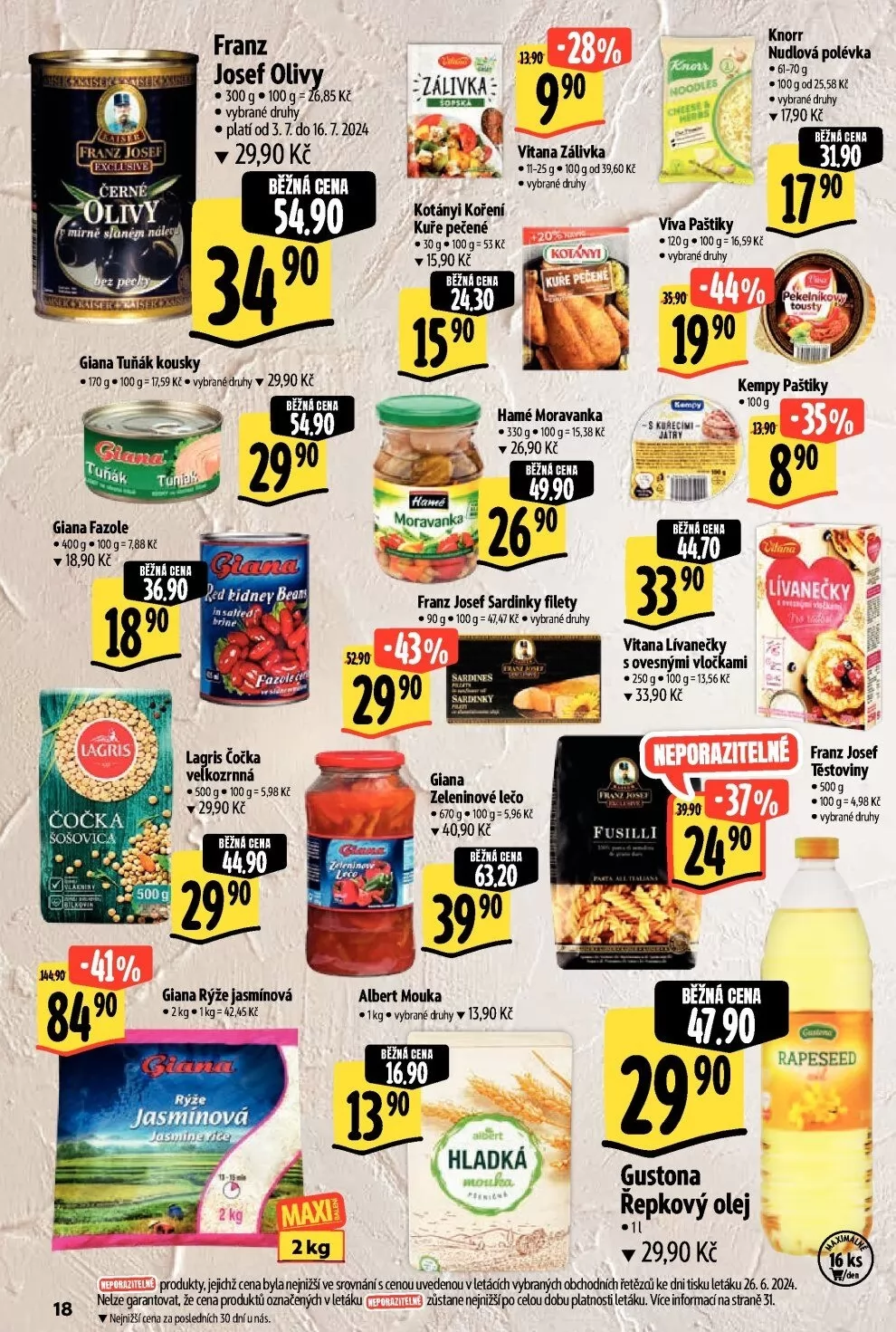vrodukty, jejchž cena byla nejližší ve srwnání s cenou uvedenou v letácích vybraných óchodních řetězců ke dni tisku let*u 26.6.2024.