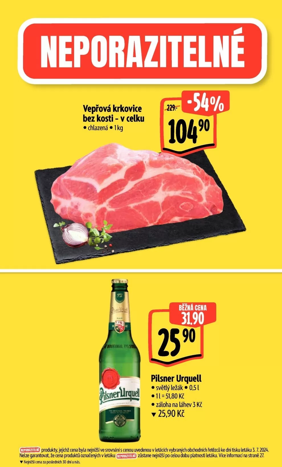produkty, jejichž cena byla nejnižší ve srovnání s cenou uvedenou v letácích vybraných obchodních řetězců ke dni tisku letáku 3.7.2024.