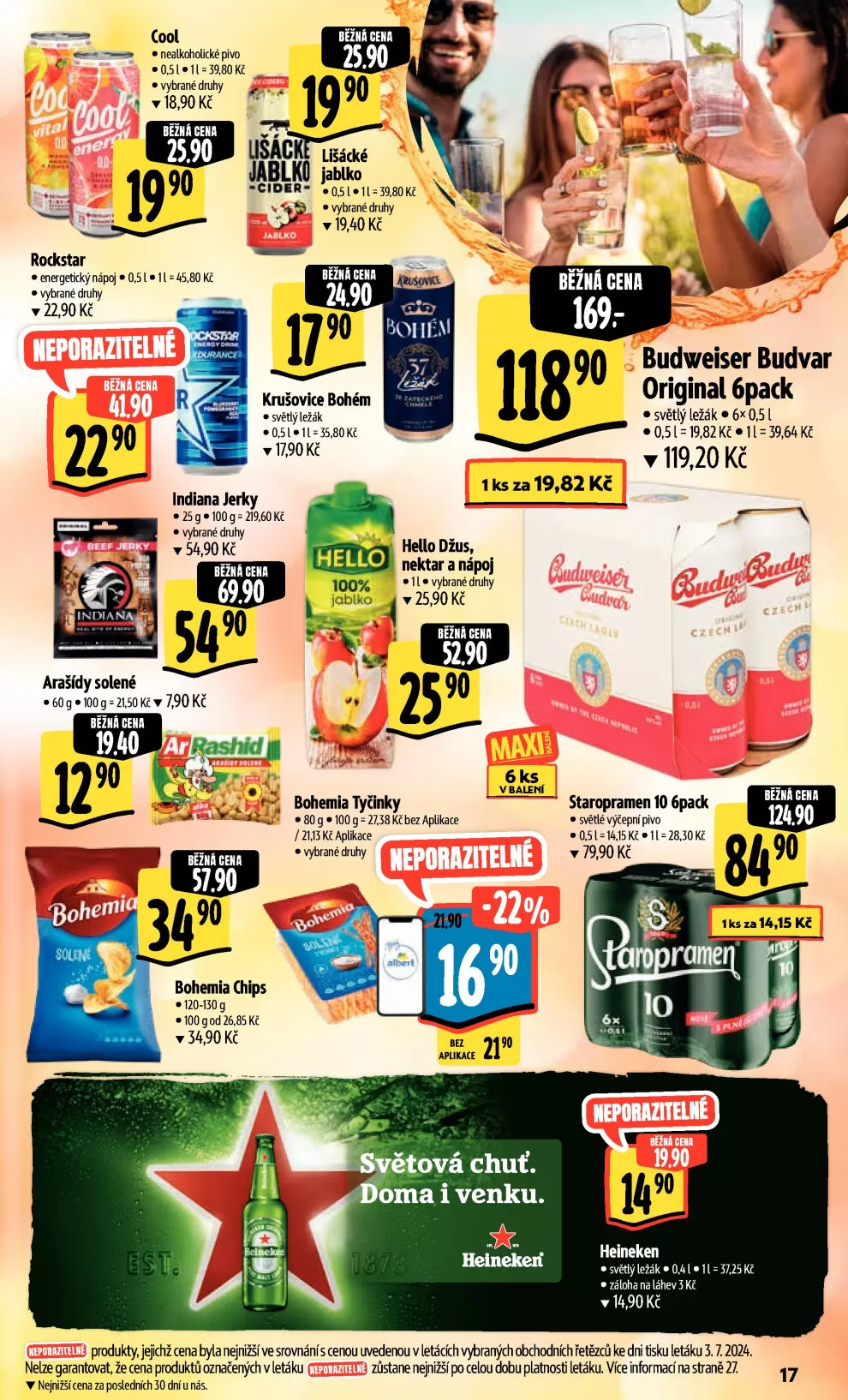 produkty, jejichž cena byla nejniëíve srovnánís temu uvedewu v letácíh vybraných óchodnth řetězců ke dni tsku letáku 3.7.2024.