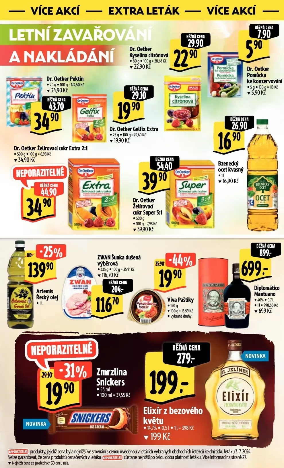 produkty, jejichž cena byla nejnižšíve srovnání s cenou uwdenou v letácích vybranýth obchodúh řetězců ke dni tisku letáku 3.7.2024.