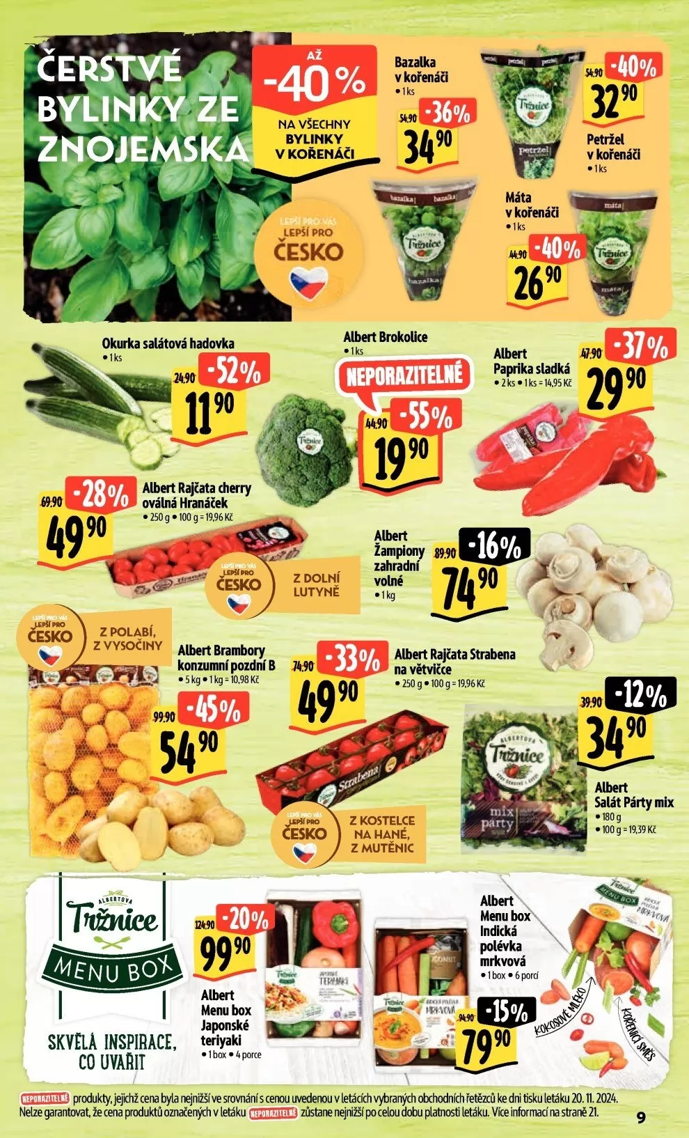 V letáku obchodu Albert najdete širokou nabídku čerstvých produktů. Mezi nimi se objevují bylinky v kořenáči, jako je bazalka a petržel, které jsou ideální pro dochucení vašich pokrmů. Dále si můžete vybrat z kvalitních rajčat cherry a oválných rajčat strabena, které jsou skvělé do salátů.