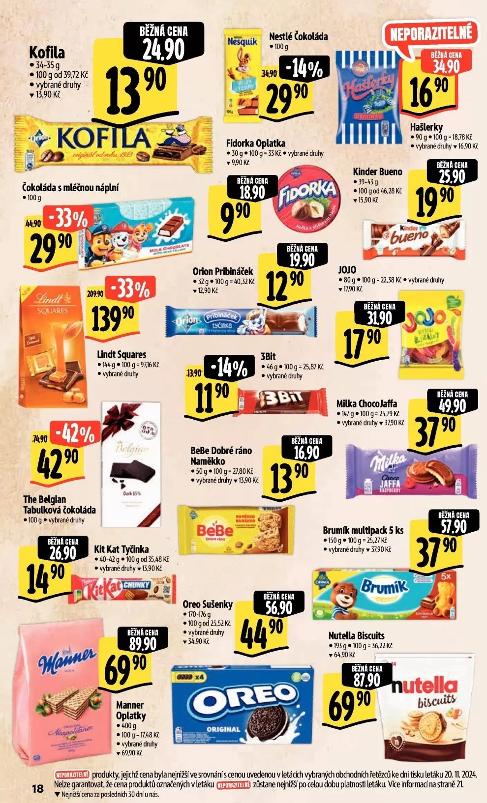 V letáku také najdete Nutella Biscuits za 64,90 Kč a Brumíka multipack za 37,90 Kč. Všechny ceny jsou garantovány jako nejnižší ve srovnání s jinými obchody. Nezapomeňte se podívat na vybrané druhy a akční nabídky!