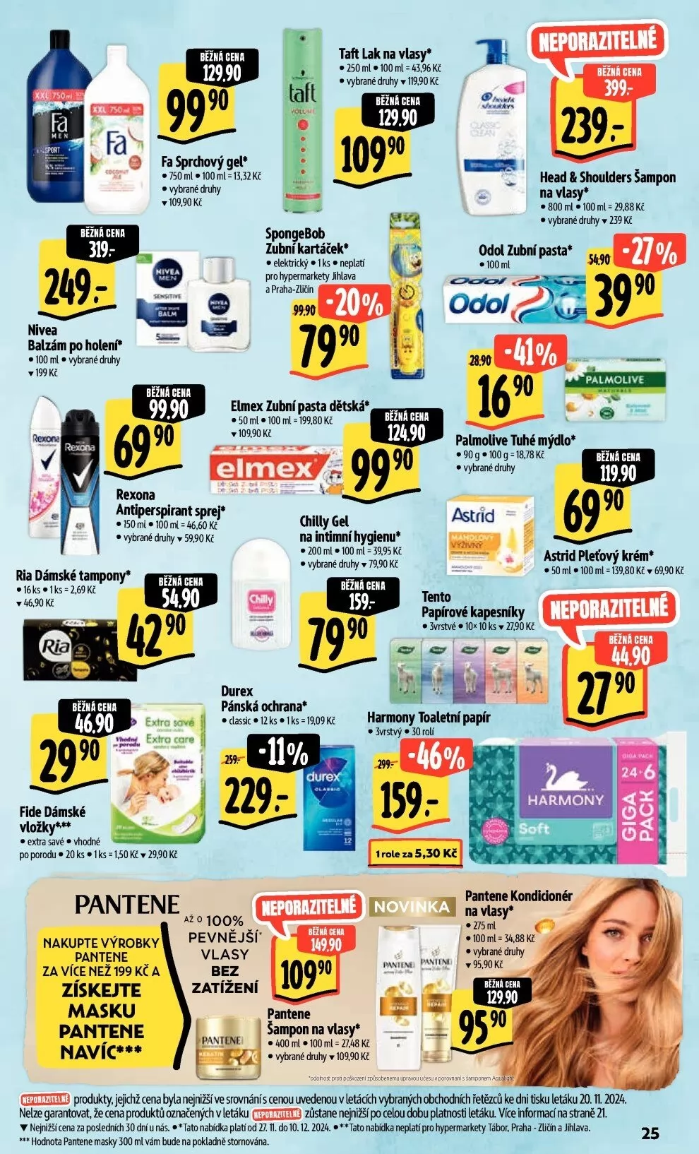 Nezapomeňte také na šampon Head & Shoulders za 239 Kč a tuhé mýdlo Palmolive za 54,90 Kč. Pro intimní hygienu jsou k dispozici produkty značky Ria a Astrid. V letáku najdete i další výrobky jako toaletní papír Harmony a šampony Pantene. Využijte akční nabídky a nakupte kvalitní produkty za skvělé ceny!