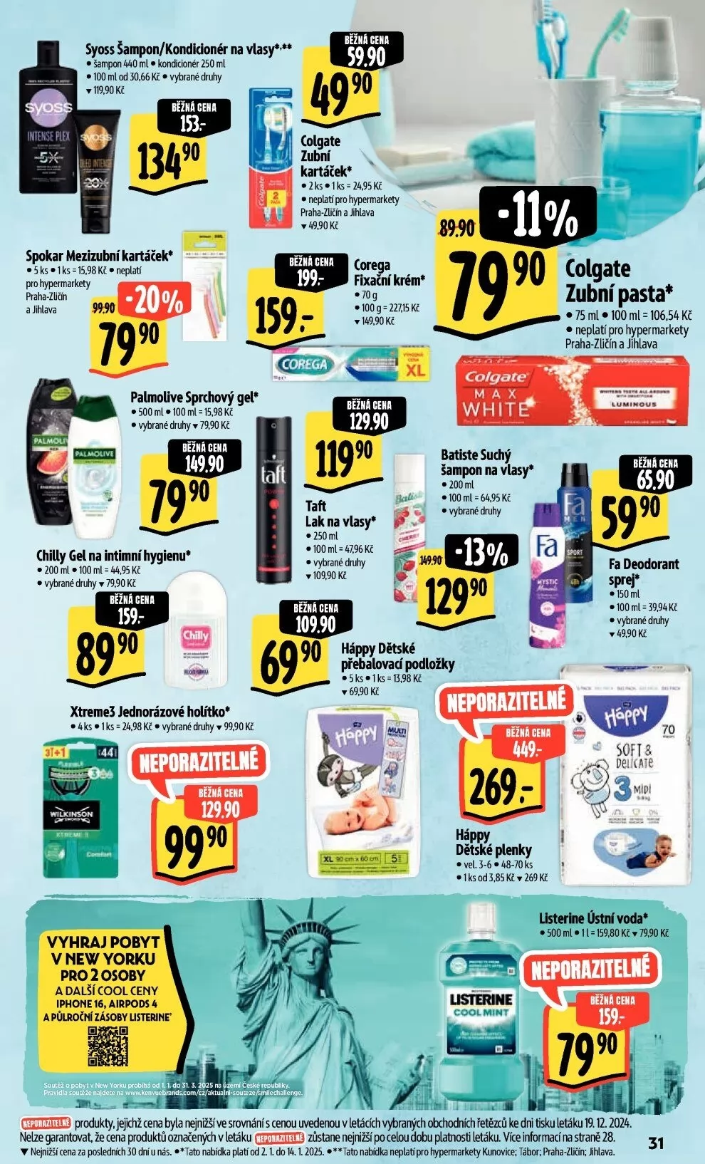 V letáku najdete také zubní kartáčky Colgate a fixační krém Orega, které jsou cenově dostupné. Pro děti jsou připraveny plenky Happy a přebalovací podložky.