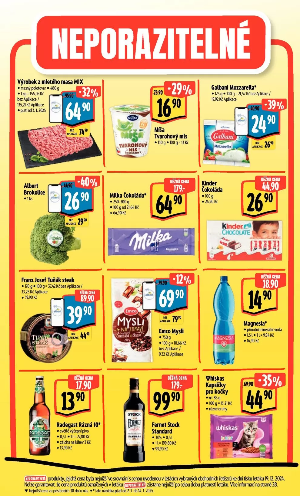 Všechny ceny jsou uvedeny bez aplikace a s aplikací, což vám umožní ušetřit ještě více. Tato nabídka platí od 2.1. do 14.1.2025, tak neváhejte a využijte skvělé akce!