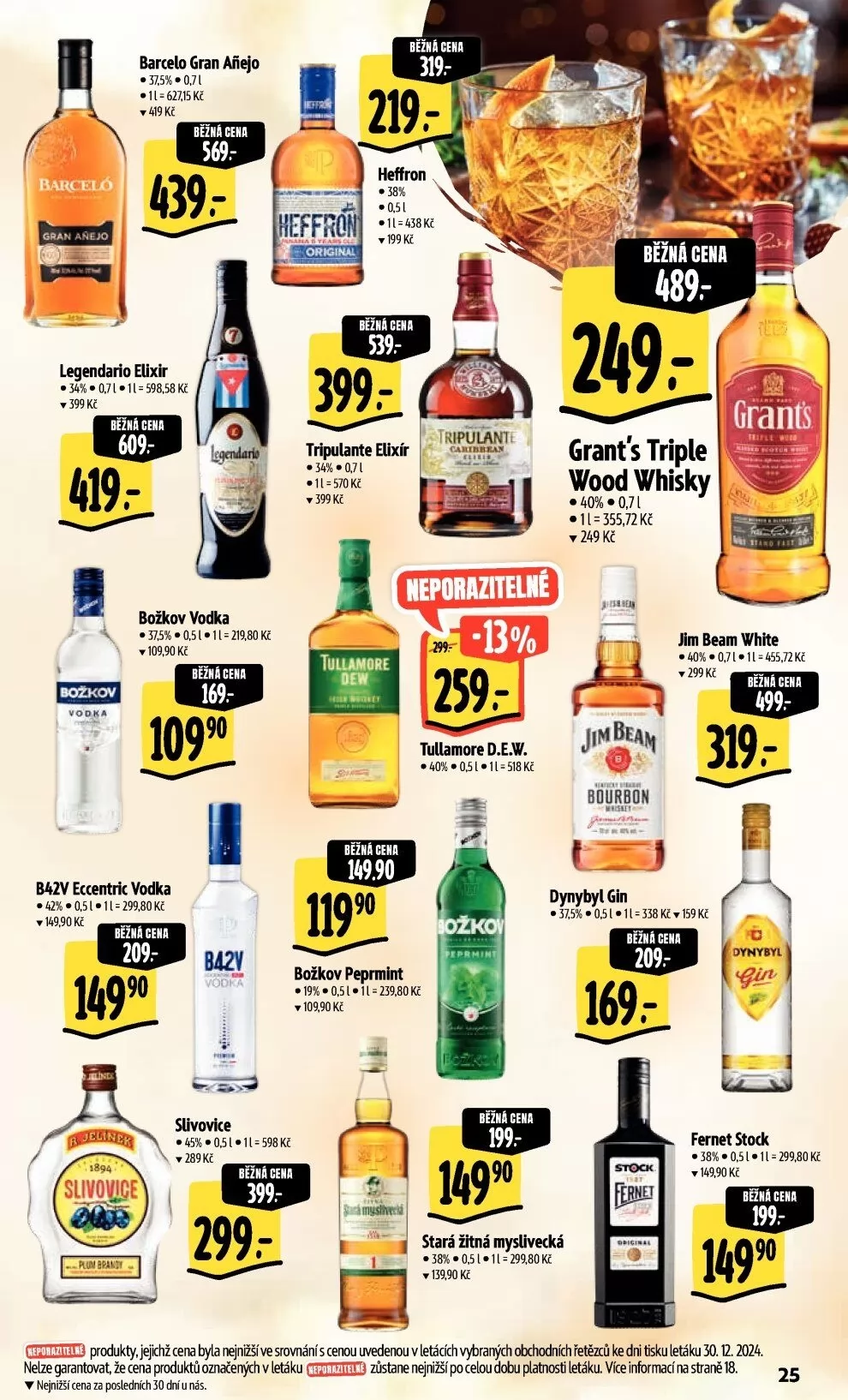 Pokud preferujete vodku, Božkov Vodka je za 109,90 Kč a Božkov Peppermint za 102,90 Kč. Nezapomeňte také na slivovici, která je nyní za 299 Kč.