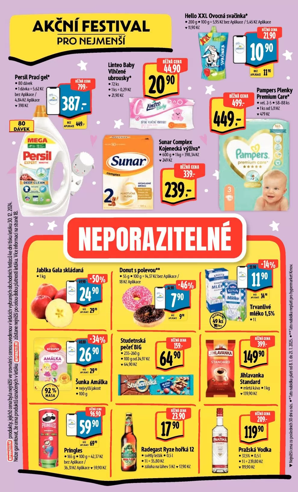 Pampers plenky Premium Care jsou k dostání v různých velikostech, a to za výhodnou cenu za kus. Milovníci sladkostí si mohou pochutnat na jablkách Gala nebo na oblíbených Pringles. Nechybí ani lahodné donuty a další dobroty.