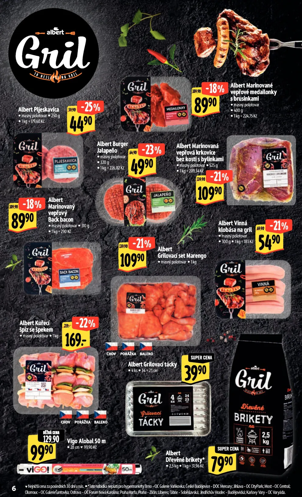 Pro grilování doporučujeme vinnou klobásu a kuřecí špíz se špekem. Nezapomeňte také na grilovací set Marengo a dřevěné brikety, které zajistí perfektní přípravu vašich pokrmů. V letáku najdete také praktické grilovací tácky a alobal pro snadnou manipulaci. Navštivte Albert a objevte skvělé nabídky pro vaši letní grilovačku!