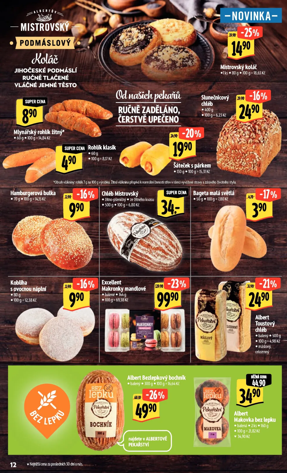 V letáku obchodu Albert najdete širokou nabídku čerstvého pečiva a lahodných výrobků. Mezi nimi se objevuje jihočeské podmáslí, ručně tlačené a ideální pro přípravu různých pokrmů. Nezapomeňte vyzkoušet mlynářský rohlík žitný, který je k dostání za supercenu.