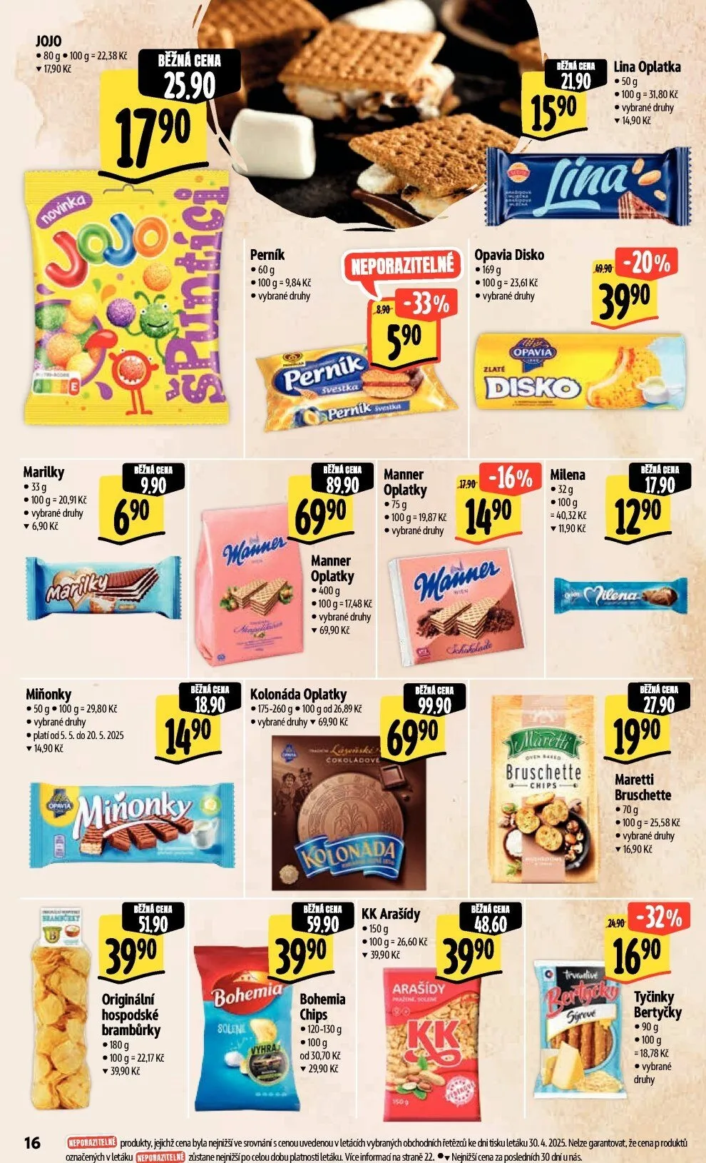 Dále si můžete vychutnat oplatky Manner, které jsou v akci za 17,90 Kč za 100 g. Nezapomeňte také na chipsy Bohemia, které se prodávají v balení 120-130 g za 30,70 Kč.