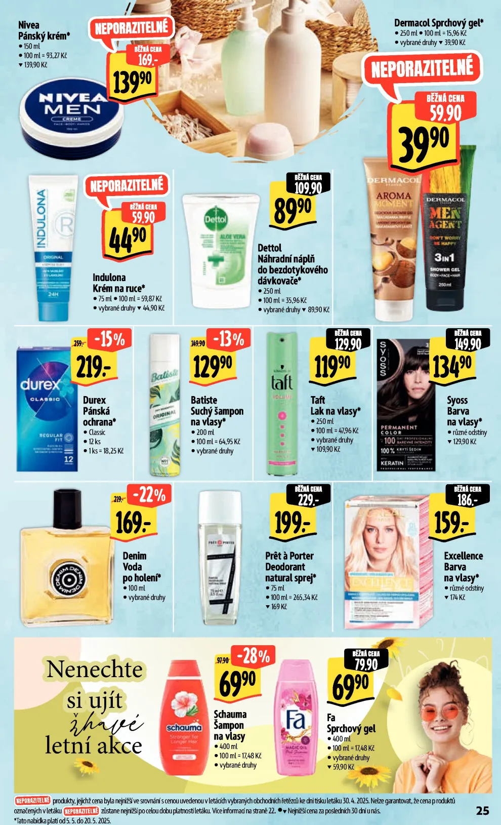 V letáku obchodu Albert najdete širokou nabídku produktů pro péči o tělo a vlasy. Mezi nimi je pánský krém o objemu 150 ml za 132,90 Kč a krém na ruce za 44,90 Kč. Dále nabízíme pánskou ochranu Durex (12 ks) za 169,90 Kč a vodu po holení Denim za 89,90 Kč.