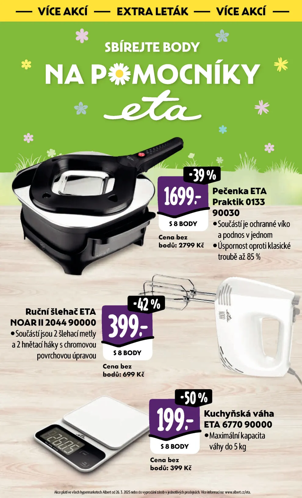 Akce platí ve všech hypermarketech Albert od 26.3.2025 do vyprodání zásob. Více informací najdete na www.albert.cz/eta.