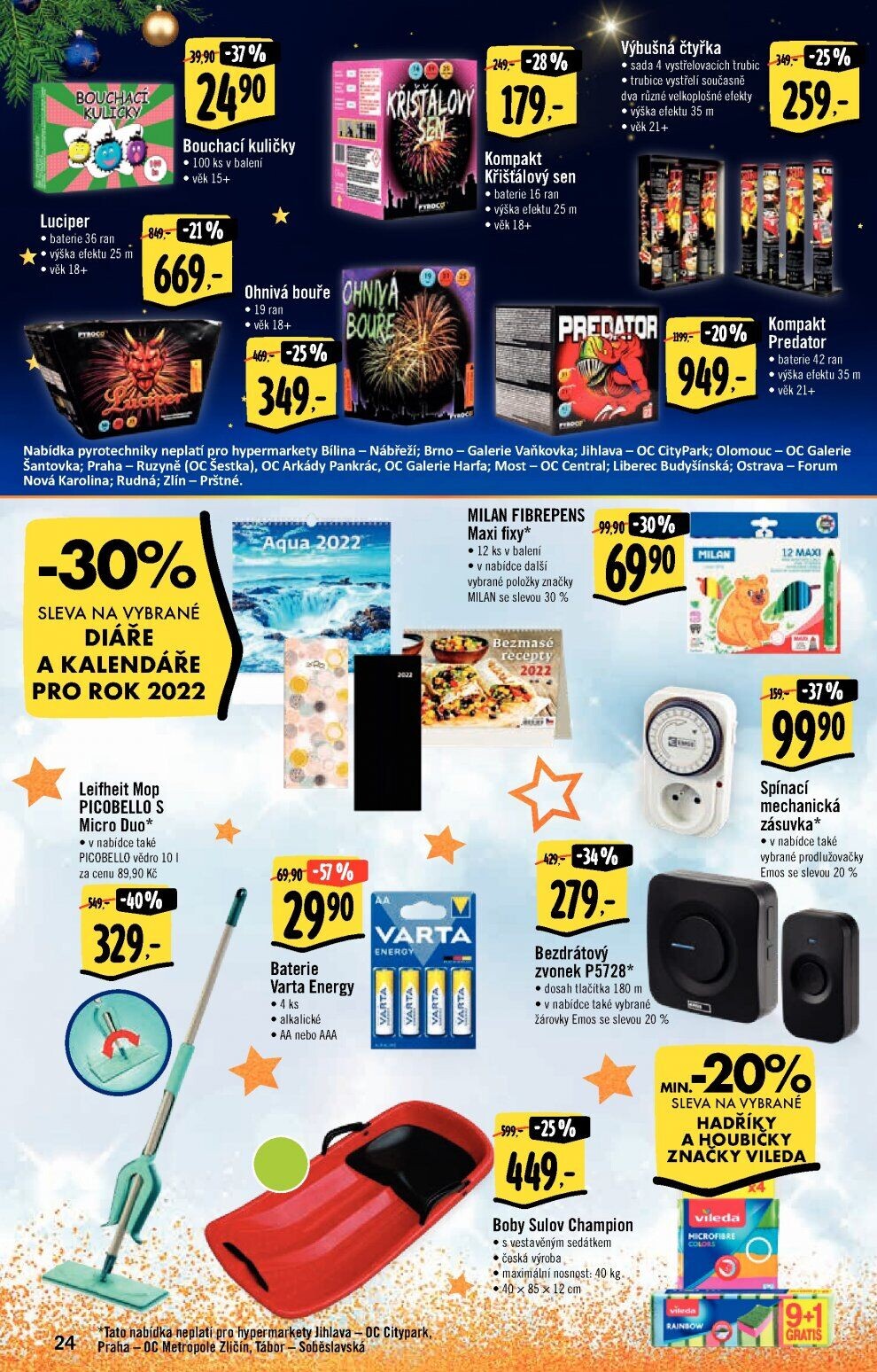 nabídka pyrotechniky neplatí pro hypermarkety bílina nábřeží; brno galerie vaňkovka; jihlava oc citypark; olomouc oc galerie