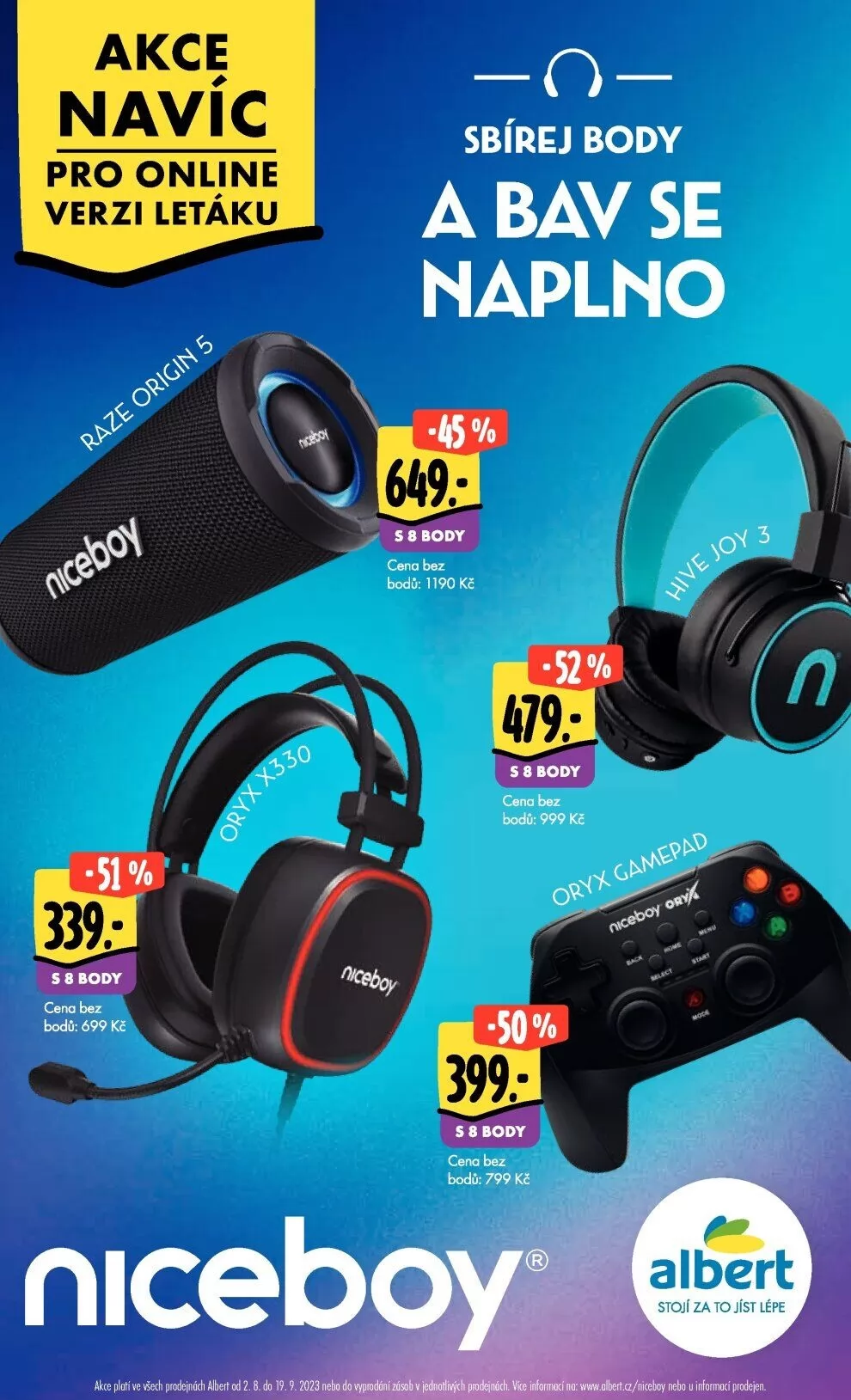 akce ploti ve všech prodejních albert od 2.8. do 19.9.2023 nebo do vypra ní v jednotliých prodeinó(h. vice inform«i no: wawolbe't.a/nicebuy nebo u informoci prodejen.