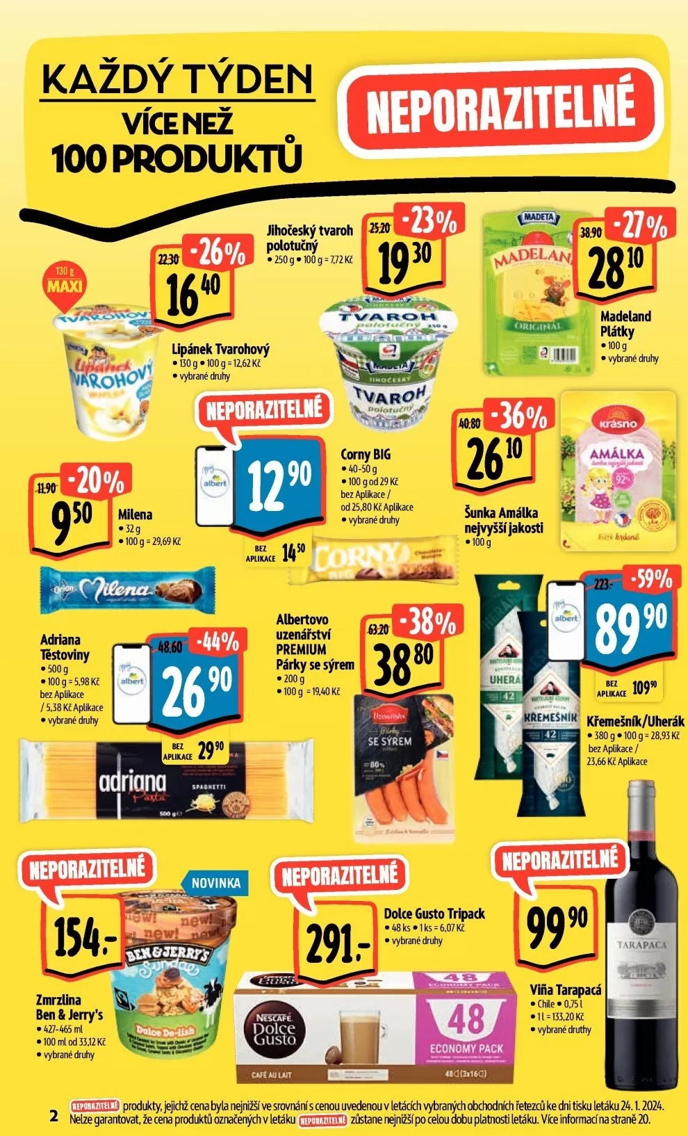 produkty, jejichž cena byla nejnižšíve srovnání s cenou uvedenou v letácích vybraných obchodních řetezců ke dni tisku letáku 24.1.2024.