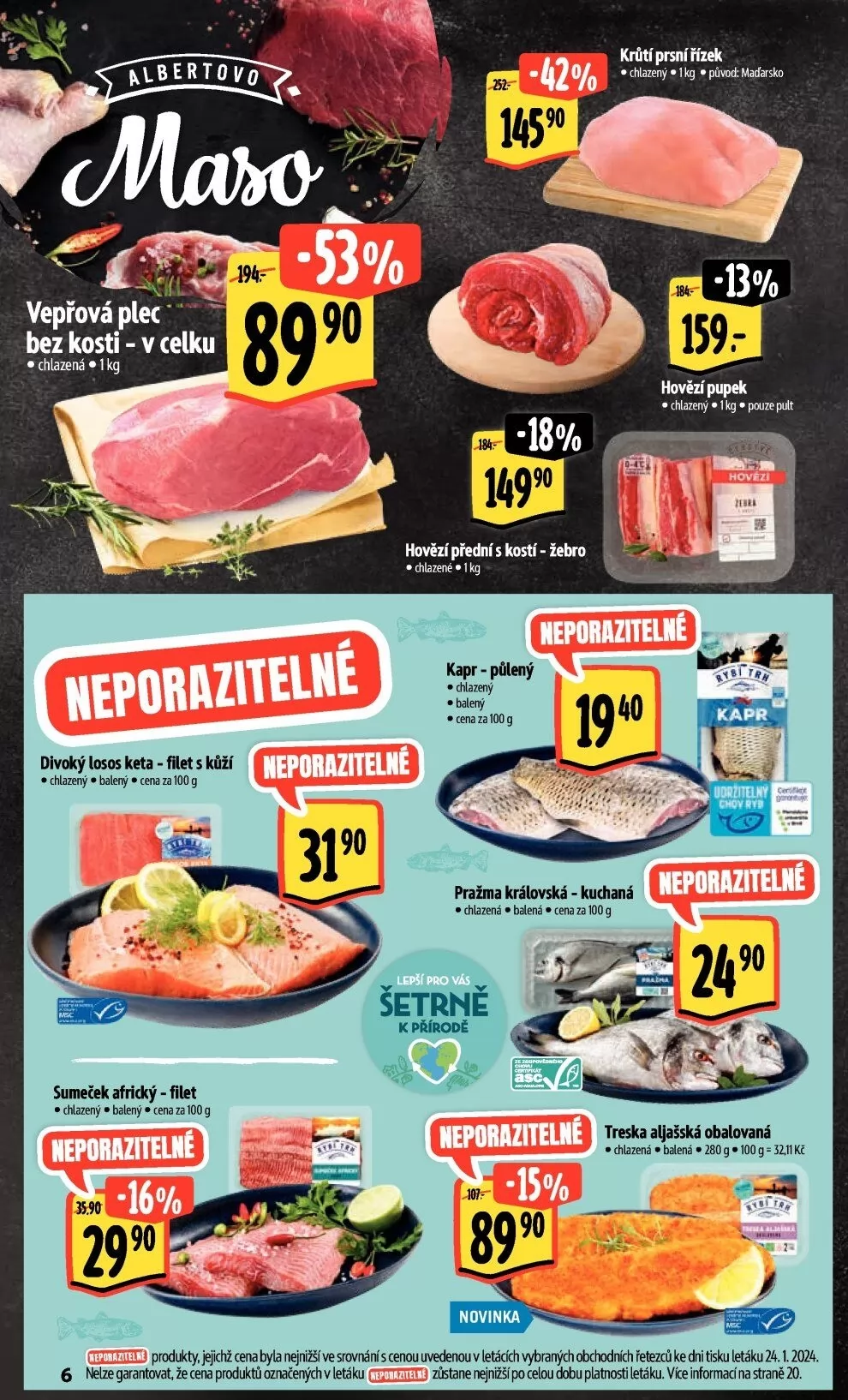 prodlkty, pj chž cena byla nejniëĺve srovnání s cenou uvedenou v letácích vybraných retezců ke dni tisku letáku 24.1.2024.