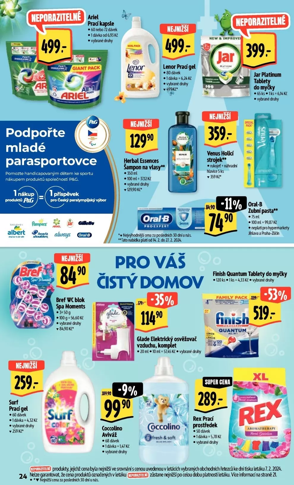 prodlkty, éj chž cena byla nejnižšíve srovnání s cenou uvedenou v letácích vybraných řetezců ke dni tisku letáku 7.2.2024.