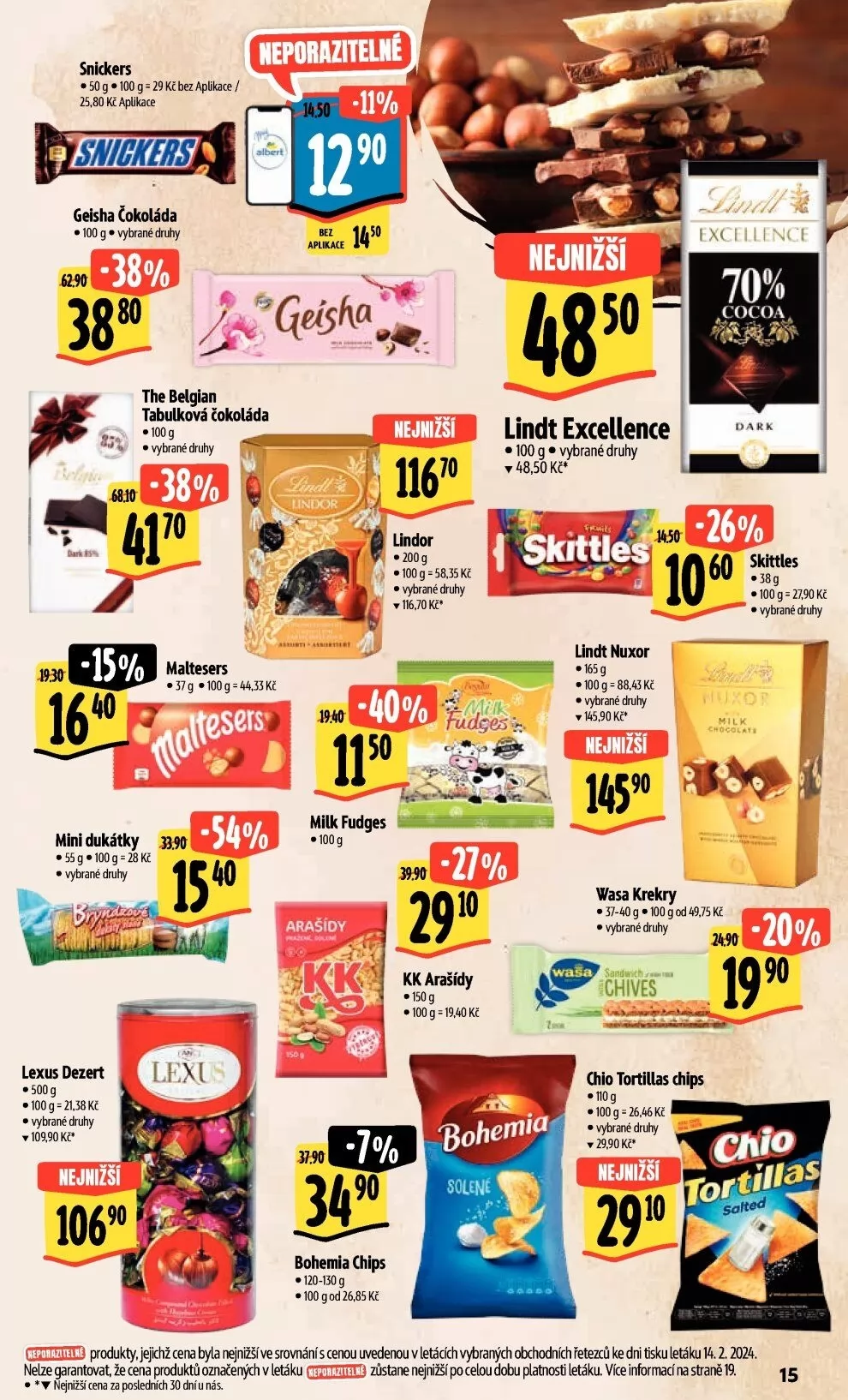 produkty, jejichž cena byla lënižšíve srovnání s cenou uvedenou v letácích olxhodních řetezců ke dni tisku letáku 14.2.2024.