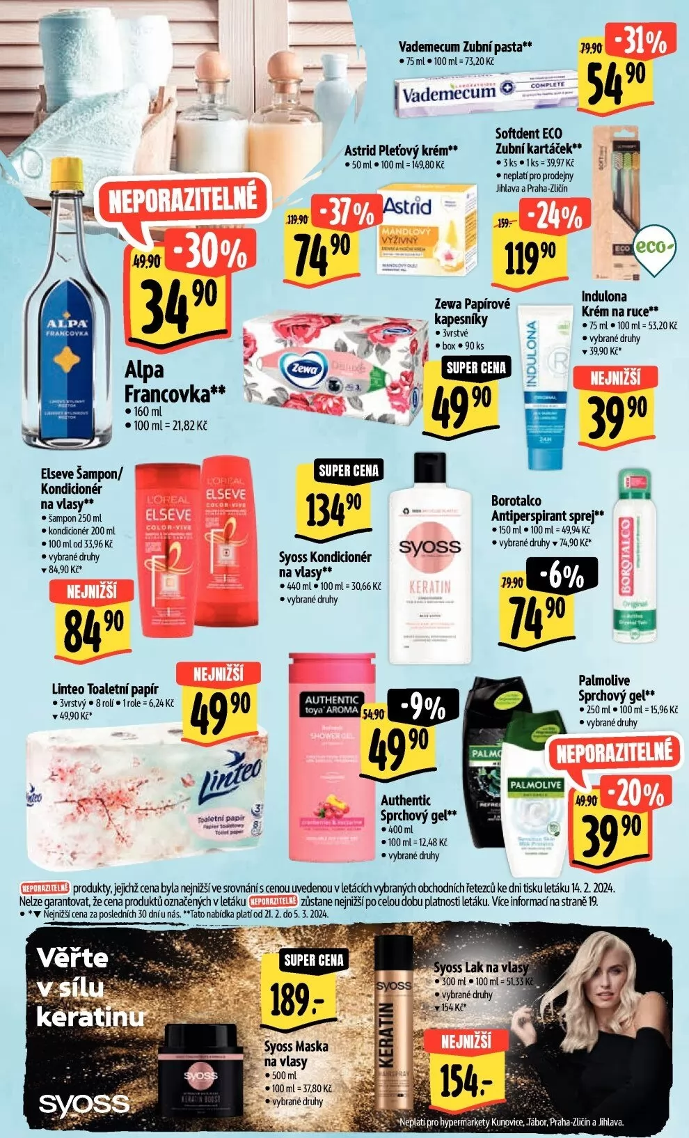 produkty, jej chž cena byla rgnižšĺve srovnání s cenou uvedemu v letácích vybraných óchodních řetezců ke dni tisku letáku 14.2.2024.