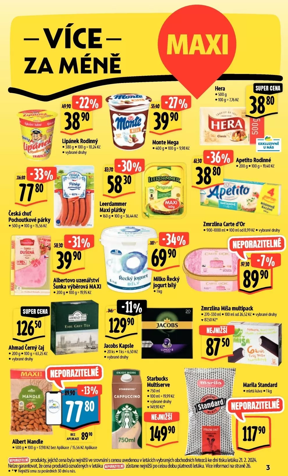 produkty, jejichž cena byla tgnižšíve srovnání s cenou uvedemu v letácích vybraných otxhodních řetezců ke dni tisku letáku 21.2.2024.