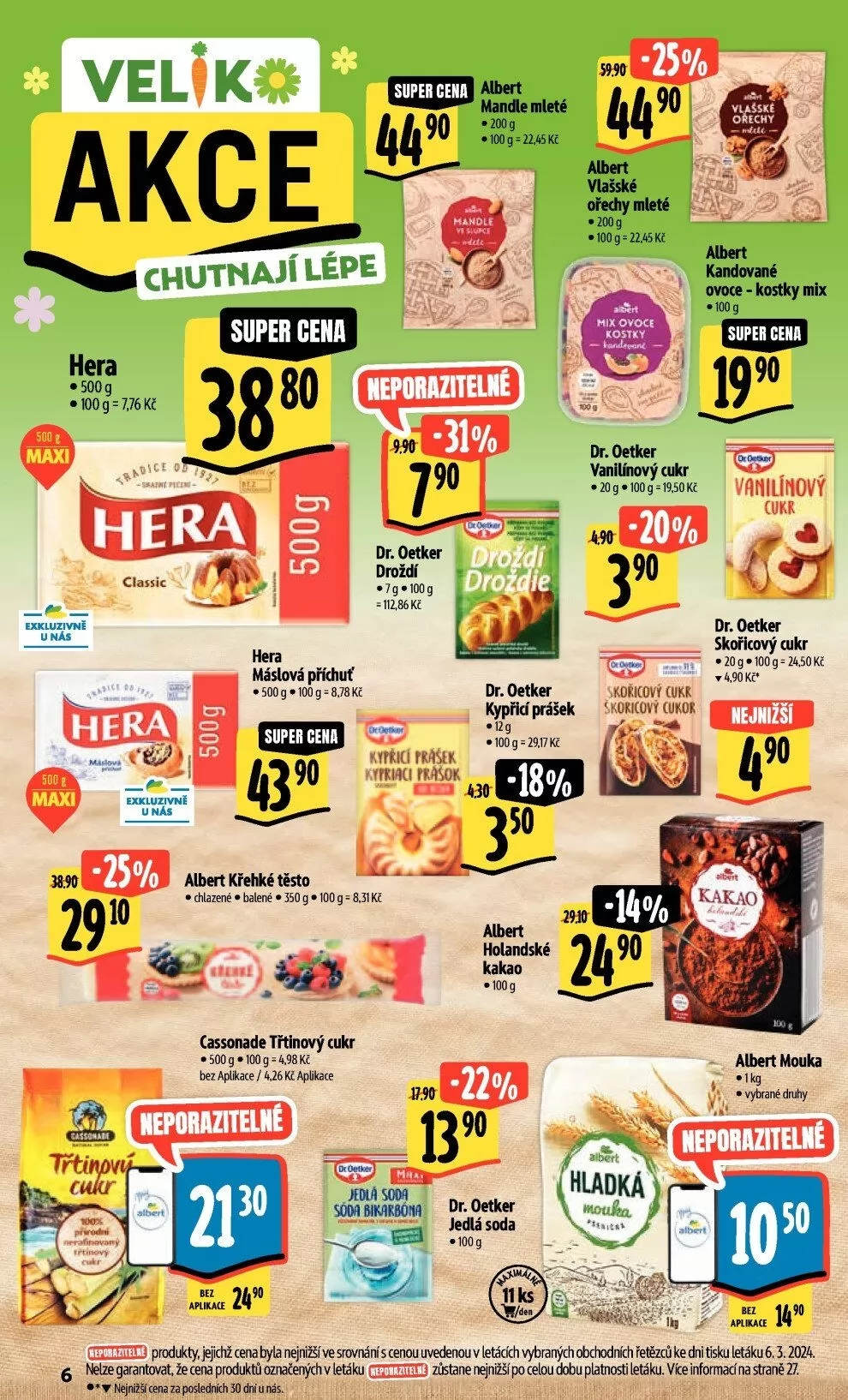 produkty, jejichž cena byla nejnižšíve srovnání s cenou uvedenou v letácích vybraných obclwdních řetězců ke dni tisku letáku 6.3.2024.