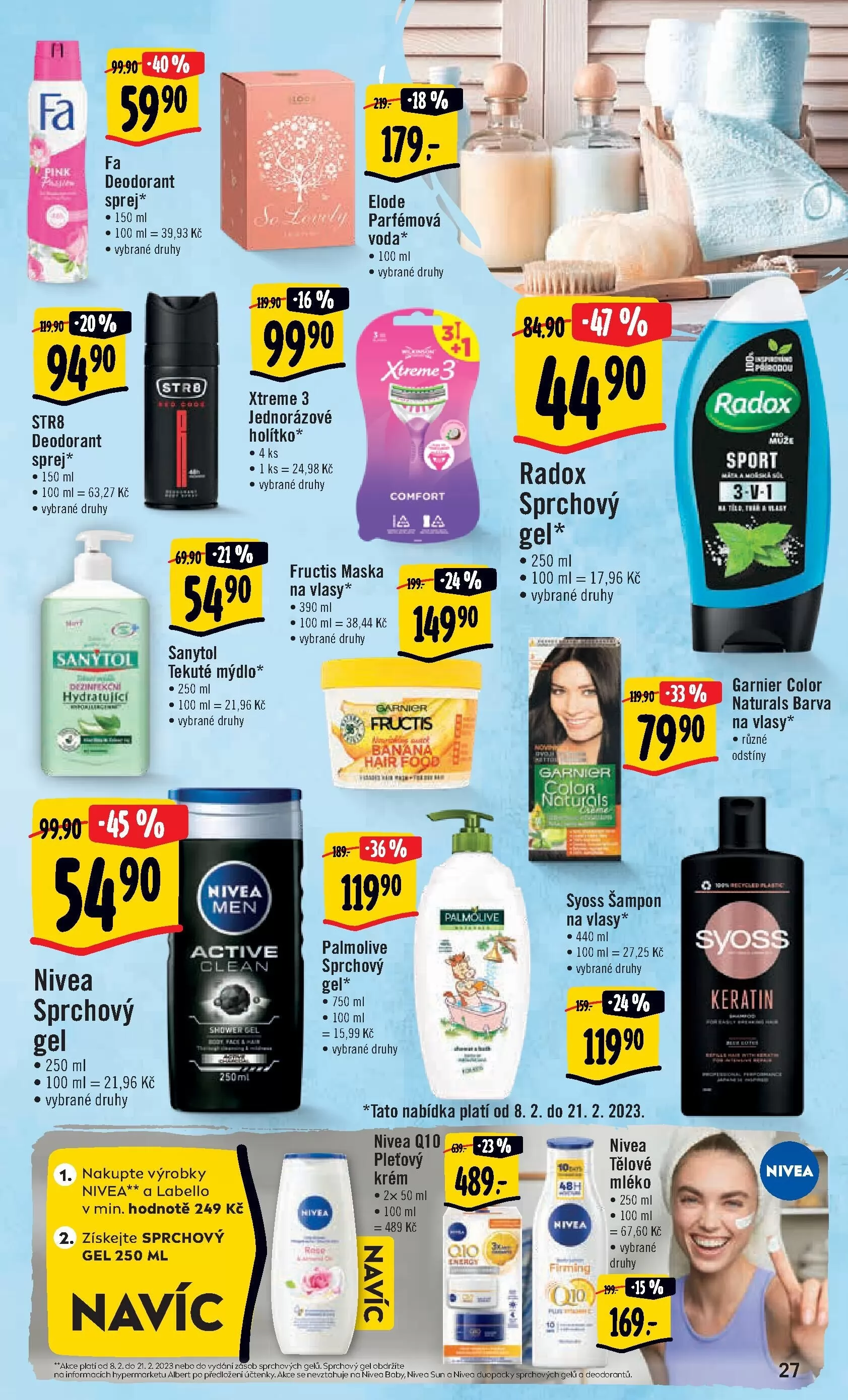 na informacích hypermarketu albert po předložení účtenky. akce se nevztahuje na nivea baby, nivea sun a nivea duopacky sprchovýchgelů deodorantů.