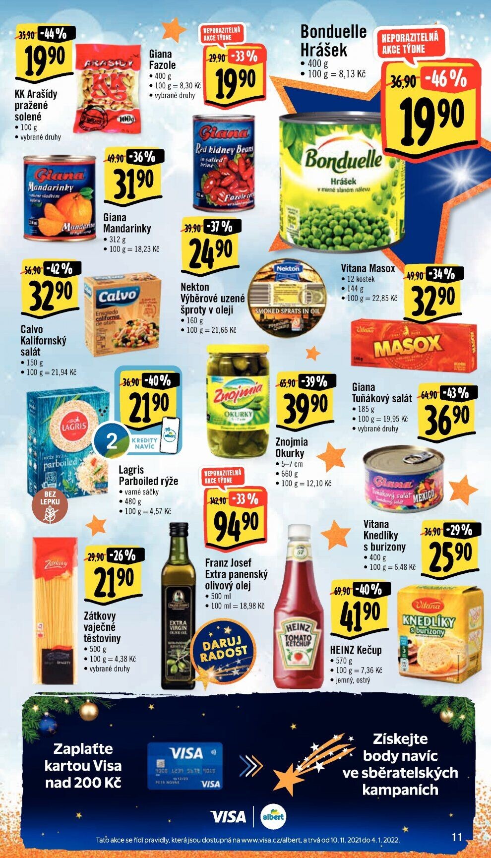 tata akce se řidi pravidly, která jsou dostupná na www.visa.cz/albert, a trvá od 10.11.2021 do 4.1.2022.