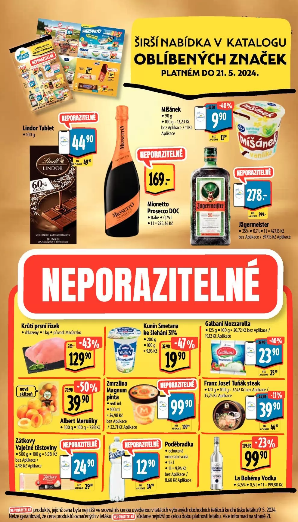produkty, jejichž cena byla nejnižšíve srovnánís cenou t,edenou v letácích vybrarých úhodních řečzců ke dni tisku letáku 9.5.2024.