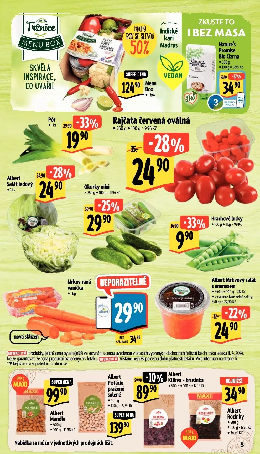jejichž cena byla nejnižší ve srovnání s cenou uvedenou v letácích vybraných obchodních řetězců ke dni tisku letáku n. 4.2024.