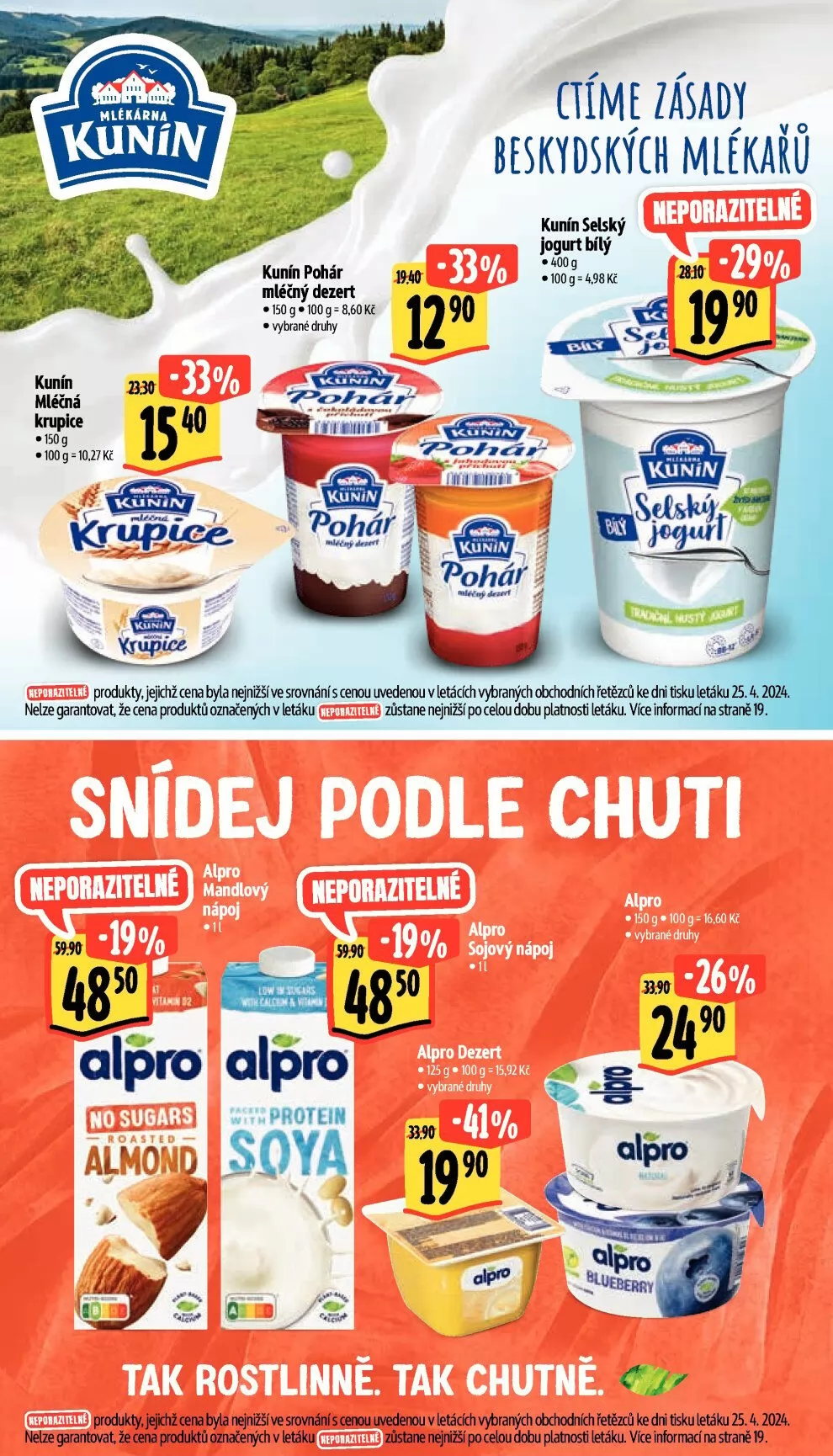 produkty, jejthž cena byla nejnižší ve srovnání s ceni uvedenou v letácích vybraných úhodních řetězců ke dni tisku letáku 25.4.2024.