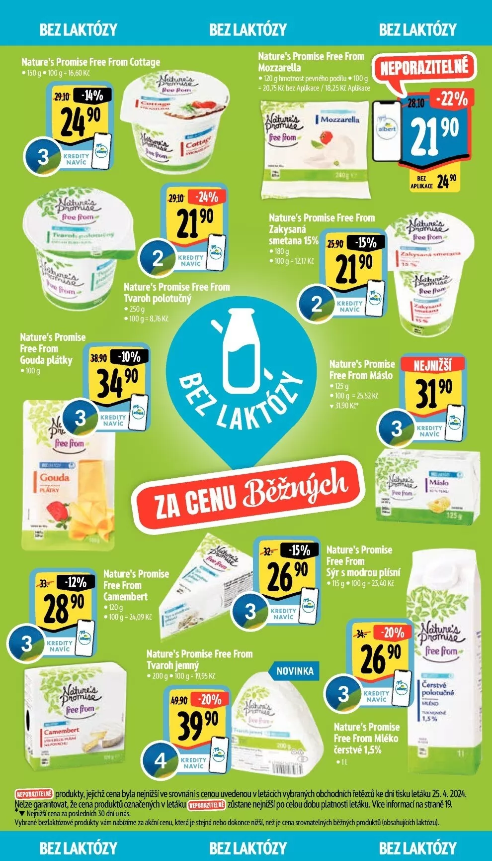 vybrané bezlaktózové produkty vám názúne za akční cenu, která je st$á nebo dokonce nižší, než je cena srovnatelných běžných pro"tů {obsahujících laktózu).