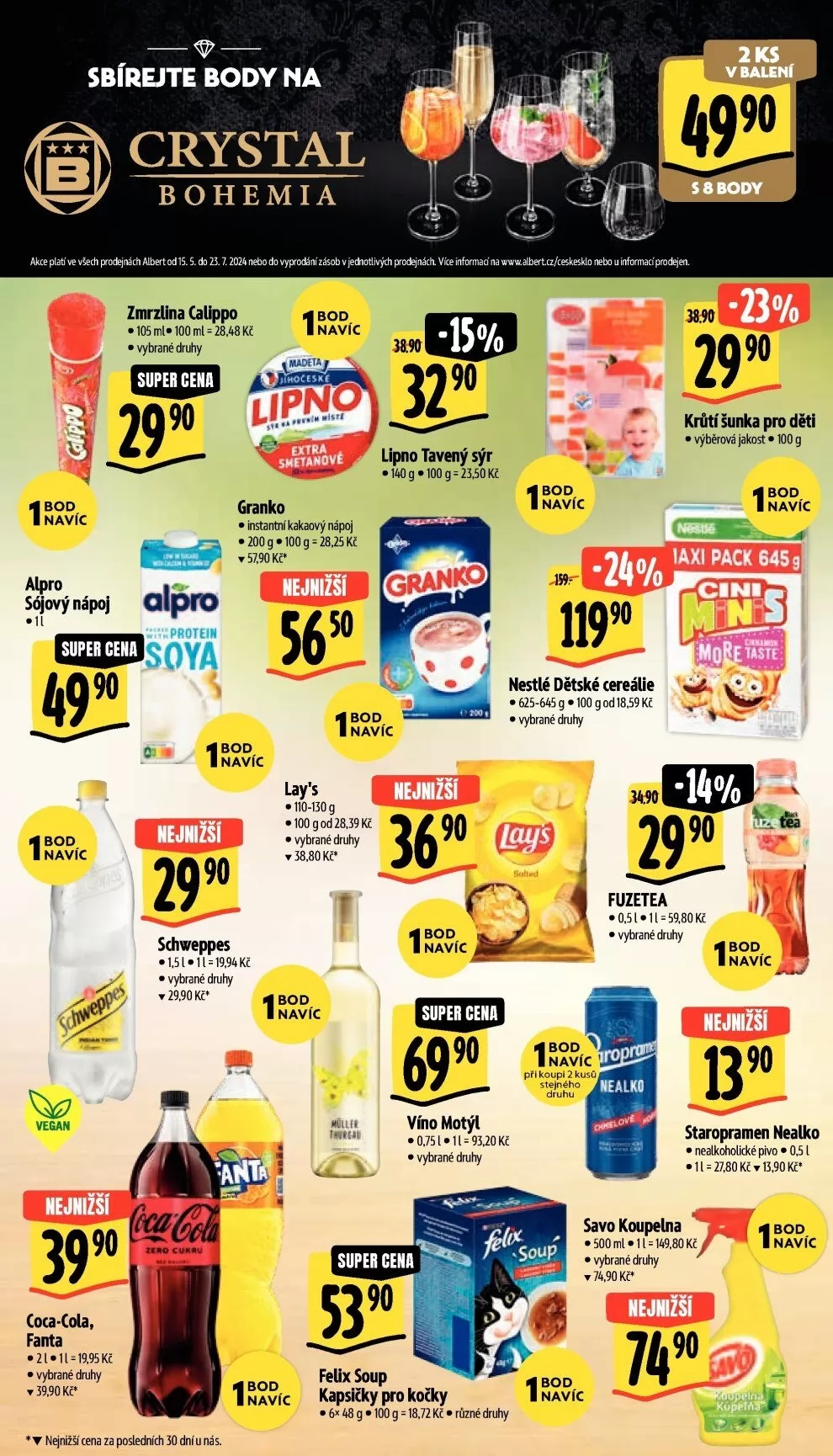 sbírejte body na crystal bohemia v balení 4990 akce platí ve všech vn±jnách albert od 15.5. 23.7. 202ánebo do vpo&ní zásob v jethotlivých vte informadnawwwdberta/cukesklo u infďmacípro*'. i bod navíc alpro sójový nápoj zmrzlina c#po • 100 • vybrané dno super cena alpo protein i navíc lipno -f. extra smetanové granko • instantní kakaový nápoj • 200 g. 100 g = 28,25kč , 5190k? nejnižší lipno tavený sýr super cena 90 1 bod navíc vegan nejnižší 90 coca-cola, fanta • vybrané druhy 39,90 bod naví nejnižší schweppes • vybrané druhy 29,90 i navíc lay's • 110-130 g • ioogod2&39kč • vybrané druhy „38,80k? navíc nejnižši 1 bod navíc super cena vílo motýl • vybrané druhy navíc 11990 nestlé dětské cereálie 625-645g.100 18,59 kč • vybrané druhy fuzetea • vybrané 1 navíc 'žľ' bod při koupi 2 kusů nealko stejného druhu krůtí šunka pro děti • výbérová jakost • 100 g 1 bod navíc 'axi pack 6453 mo i bod navíc nejnižši staropramen nealko • nealkoholické pivo • 0,5 1 savo koupelna • vybrané 74,90 nejnižší 90 1 bod navíc i navíc super cena 90 felix soup kapsičky pro kočky • 6x 48 g • 100 g = 18,72 kč • různé druhy 'spl p i navíc n$ižší cena za posledních 30 dní u nás.